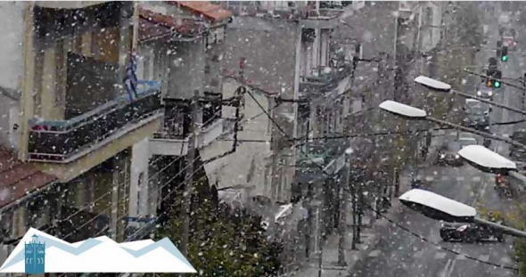 Στα λευκά ντύνεται σιγά-σιγά η Κοζάνη, καθώς η χιονόπτωση άρχισε να γίνεται έντονη λίγο μετά τις 3 το μεσημέρι.