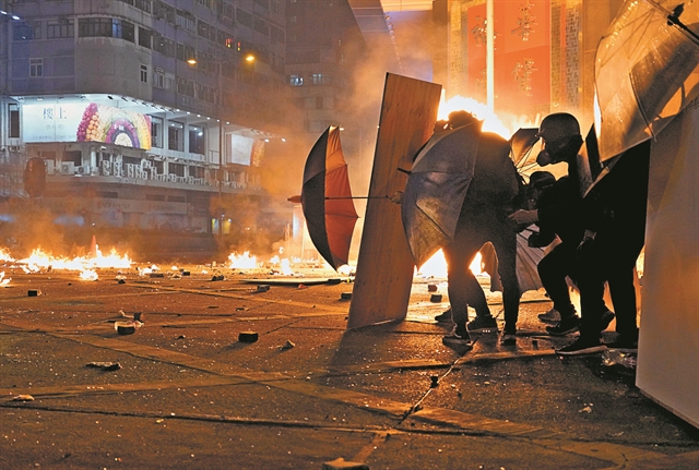 Δεκάδες διαδηλωτές παραμένουν για τρίτη ημέρα κλεισμένοι στην Πολυτεχνική Σχολή του Χονγκ Κονγκ μετά την εντυπωσιακή απόδραση χθες Δευτέρα το βράδυ πολλών συντρόφων τους, την ώρα που το Πεκίνο επανέλαβε ότι δεν θα επιτρέψει να βυθιστεί στο χάος η πρώην βρετανική αποικία.