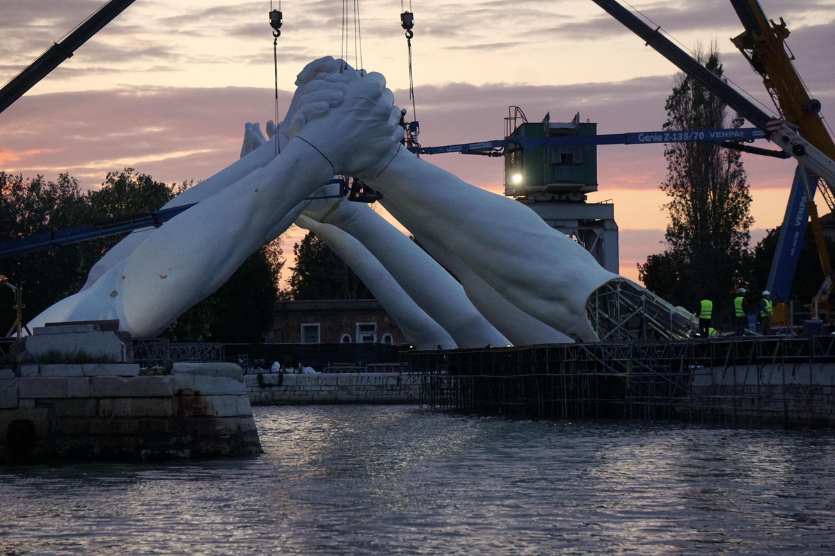 Το καινούργιο γλυπτό του αποκάλυψε, στη Βενετία, ο Λορέντσο Κουίν (Lorenzo Quinn): στην είσοδο του Arsenale -στα καρνάγια, όπου στο παρελθόν η πανίσχυρη Γαληνοτάτη ναυπηγούσε τις γαλέρες της- έξι ζευγάρια χέρια ενώνονται. Κάθε ένα εκπροσωπεί και μία παγκοσμίως αποδεκτή αξία: φιλία, σοφία, βοήθεια, πίστη, ελπίδα, αγάπη.