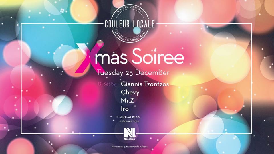 Ανήμερα Χριστουγέννων το Couleur Locale συμπράττει με ένα από τα πιο δραστήρια mobile parties της Αθήνας για μια εορταστική βραδιά στο ολοκαίνουργιο ‘View Bar’, στον 2ο όροφο του εντυπωσιακού κτιρίου που στεγάζεται.