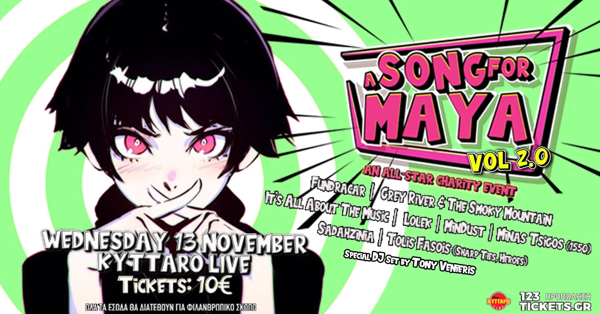 Ένα χρόνο μετά, στα 24α γενέθλιά της, ανακοινώνουμε το A Song For Maya Vol 2.0, που έρχεται την Τετάρτη 13 Νοεμβρίου στο Κύτταρο, γεμάτο αγάπη και νότες για εκείνη αλλά και όσους το έχουν ανάγκη.