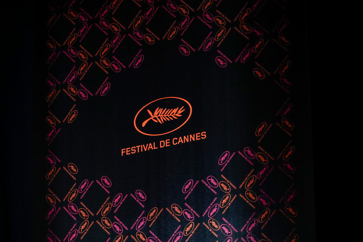 epa10570602 Signage with the logo of the festival during a press conference to present the 76th Cannes Film Festival Official Selection at the UGC Normandie hall in Paris, France, 13 April 2023. The 76th edition of the Cannes Film Festival will take place from May 16 to 27. EPA/TERESA SUAREZ