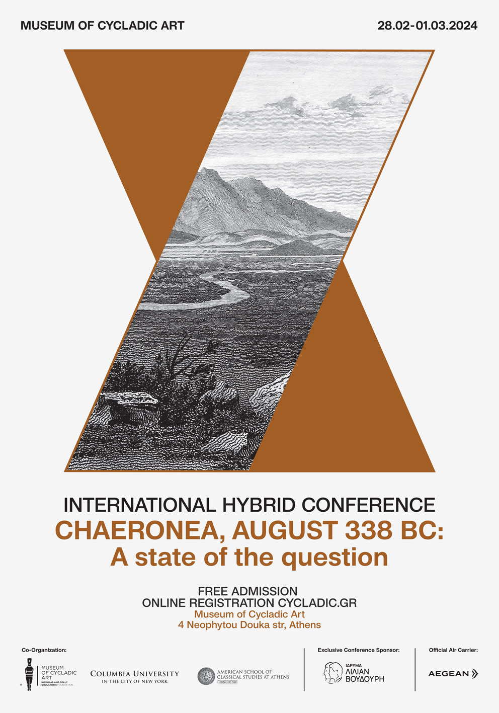 Στο πλαίσιο της έκθεσης «Χαιρώνεια, 2 Αυγούστου 338 π.Χ.: Μια μέρα που άλλαξε τον κόσμο», το Μουσείο Κυκλαδικής Τέχνης διοργανώνει από τις 28 Φεβρουαρίου μέχρι την 1 Μαρτίου τριήμερο διεθνές επιστημονικό συνέδριο με τίτλο «Χαιρώνεια, Αύγουστος 338 π.Χ.: Μια σύνοψη του ζητήματος». Το Συνέδριο πραγματοποιείται σε συνεργασία με το Πανεπιστήμιο του Columbia στη Νέα Υόρκη και την Αμερικάνικη Σχολή Κλασικών Σπουδών στην Αθήνα. H είσοδος στο Συνέδριο είναι ελεύθερη.