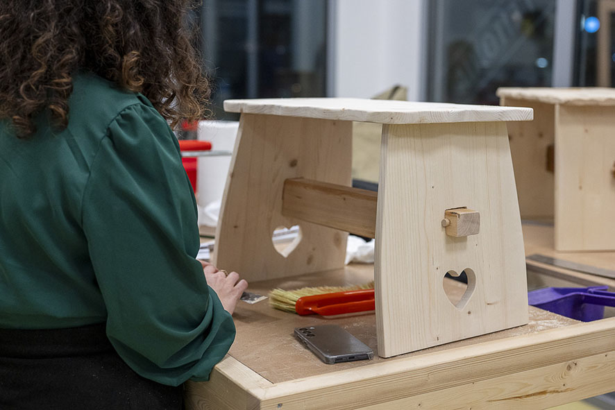 Ξεκινάμε από τα βασικά της ξυλουργικής, αλλά αναλαμβάνουμε δράση αμέσως, ώστε να μάθουμε πώς να χρησιμοποιούμε τα εργαλεία χειρός. Μέχρι το τέλος των μαθημάτων, κάθε συμμετέχων θα φέρει στο σπίτι το δικό του χειροποίητο σκαμπό.