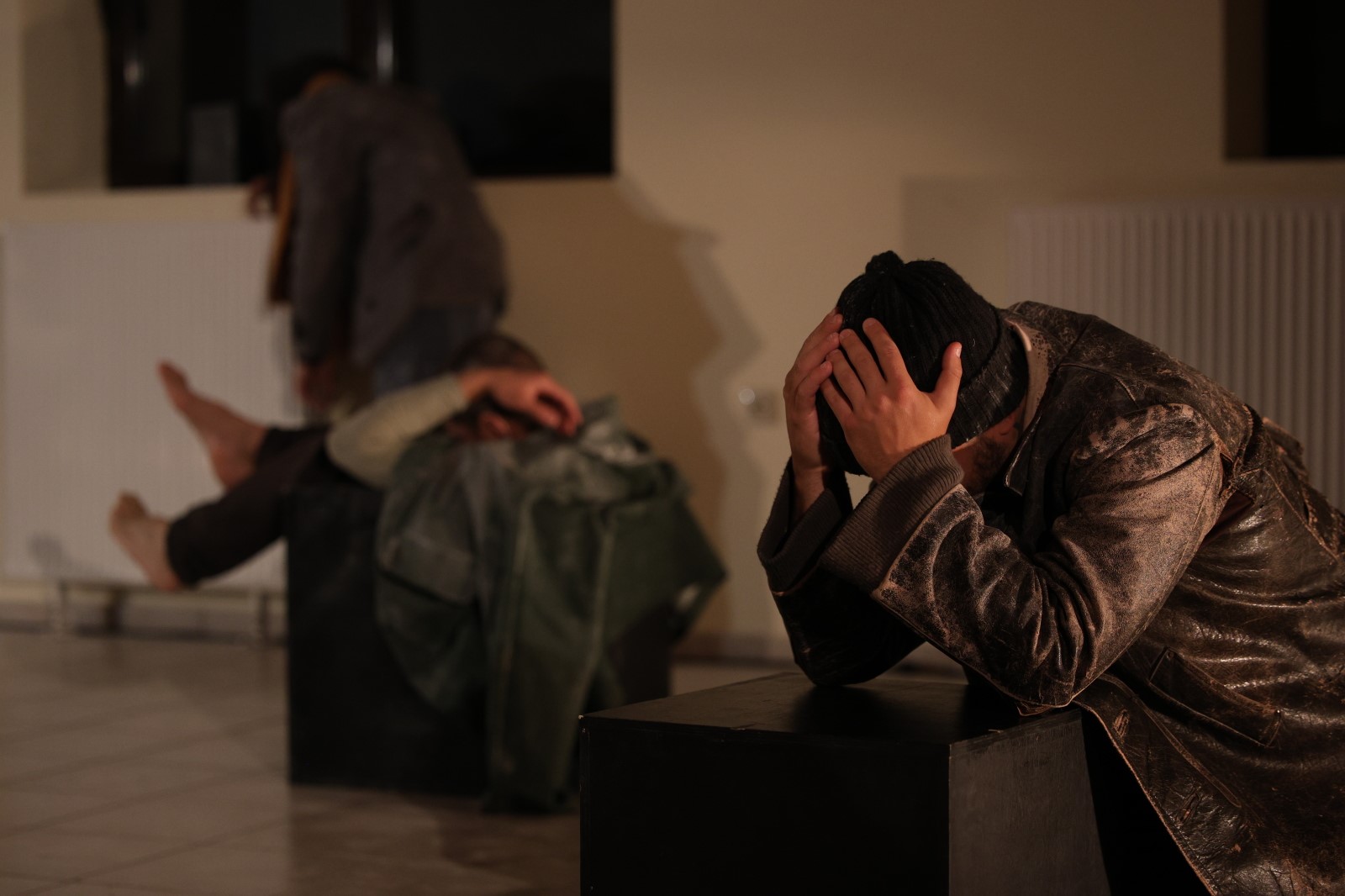 Μια ομάδα ανδρών ξεπροβάλλει από διάφορα σημεία στα χωράφια. Μοιάζουν σαν εξορισμένοι, διωγμένοι, κυνηγημένοι από τον τόπο τους. Εισβάλλουν στην αίθουσα. Ο χώρος τούς θυμίζει κάτι. Δεν νιώθουν απειλή, αλλά ούτε οικειότητα. Πρόκειται να αντιμετωπίσουν τις αλήθειες της ζωής τους. Προσπαθούν να κάνουν τα πρώτα βήματα για να βγουν από τη θέση που τους εγκλωβίζει. Η προσπάθεια που απαιτείται είναι τεράστια. Το θάρρος, επίσης. Μόνο η συμφιλίωση με το παρελθόν θα τους επιτρέψει να προχωρήσουν μπροστά. Η αποδοχή του εαυτού τους είναι η αφετηρία για να αποδεχτούν και τους άλλους. Η ζωή τους είναι γεμάτη από συναντήσεις με πρόσωπα που τους έχουν στιγματίσει. Πρόσωπα που αγαπούν, που τα νιώθουν κοντά τους, που τους στηρίζουν. Πρόσωπα που πλήγωσαν, που πρόδωσαν και αυτούς για τους οποίους αδιαφόρησαν.