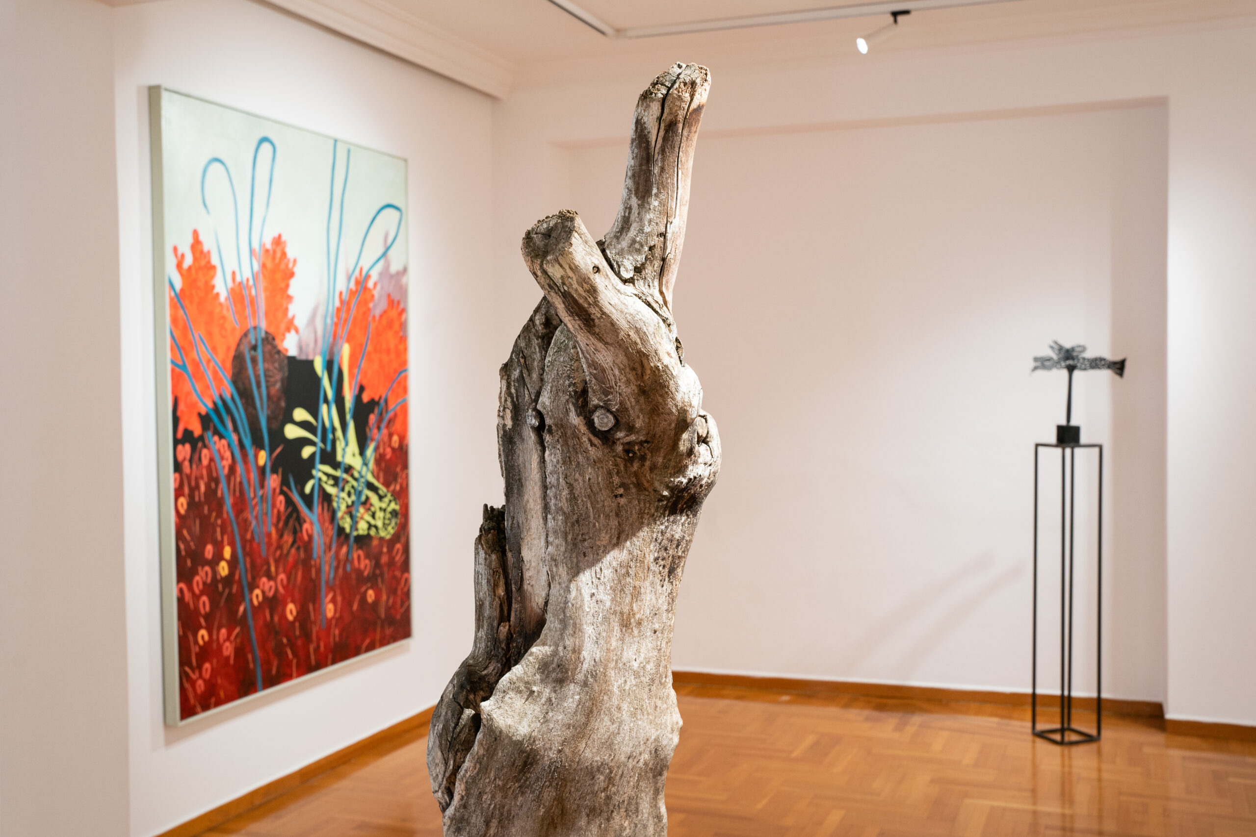Φωτογραφία: Εγκατάσταση Μυθιστορίες ΙΙ (Έργα: Αθανασιάδη, Καμπάνης, Μαντζαβίνος). Παραχώρηση του καλλιτέχνη και της CITRONNE Gallery © Alexandra Masmanidi