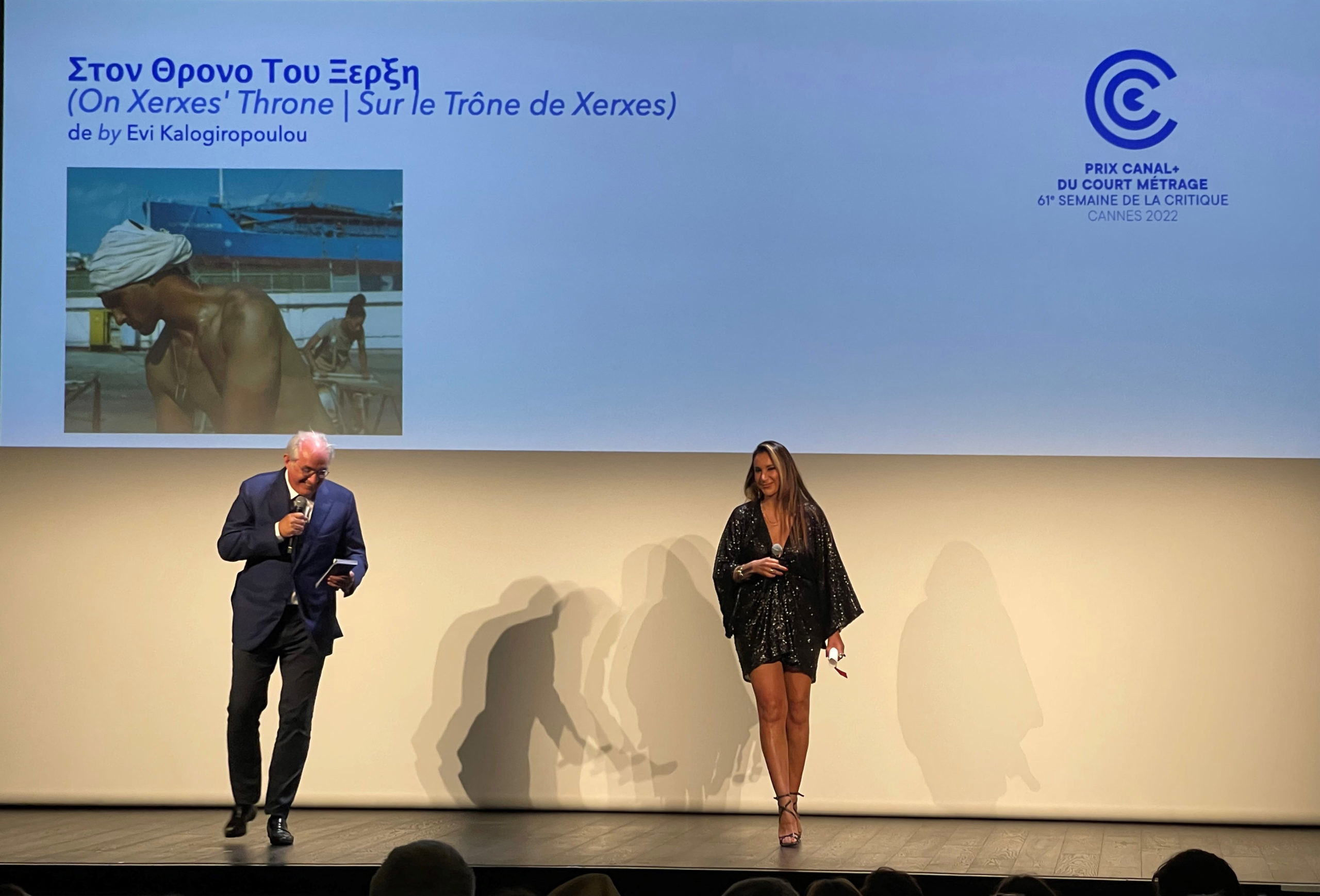 H ταινία, που παρουσιάστηκε χθες ως επίσημη συμμετοχή στην Εβδομάδα Κριτικής του 75ου Φεστιβάλ Καννών, τιμήθηκε πριν από λίγο με το βραβείο του Canal+ για ταινία μικρού μήκους. Το Canal+ απένειμε το βραβείο, που συνοδεύεται και από χρηματικό έπαθλο, στην ταινία Στον Θρόνο του Ξέρξη, για τον τρόπο προσέγγισης μιας αρχαιοελληνικής ιστορίας με παραβολές που τοποθετούνται με εξαιρετικά ευρηματικό τρόπο σε ένα αλλόκοσμο τοπίο.