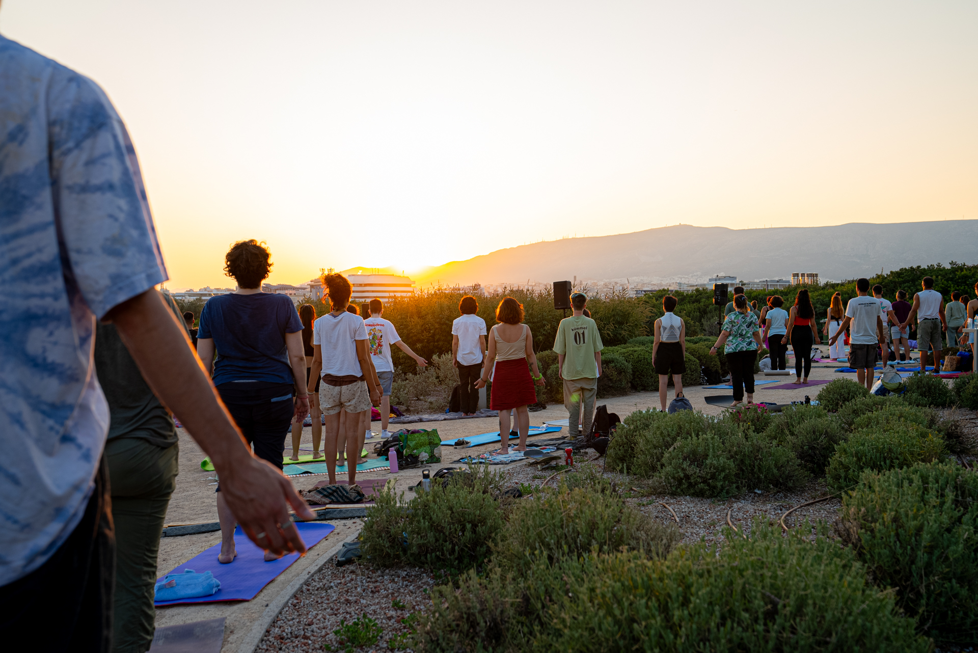 Μόλις ξημερώσει, στα Νότια Μονοπάτια του Πάρκου Σταύρος Νιάρχος, το σώμα συνδέεται με τον νου με μαθήματα Hatha Yoga με τον δάσκαλο Yoga, Γιάννη Γιαπλέ.