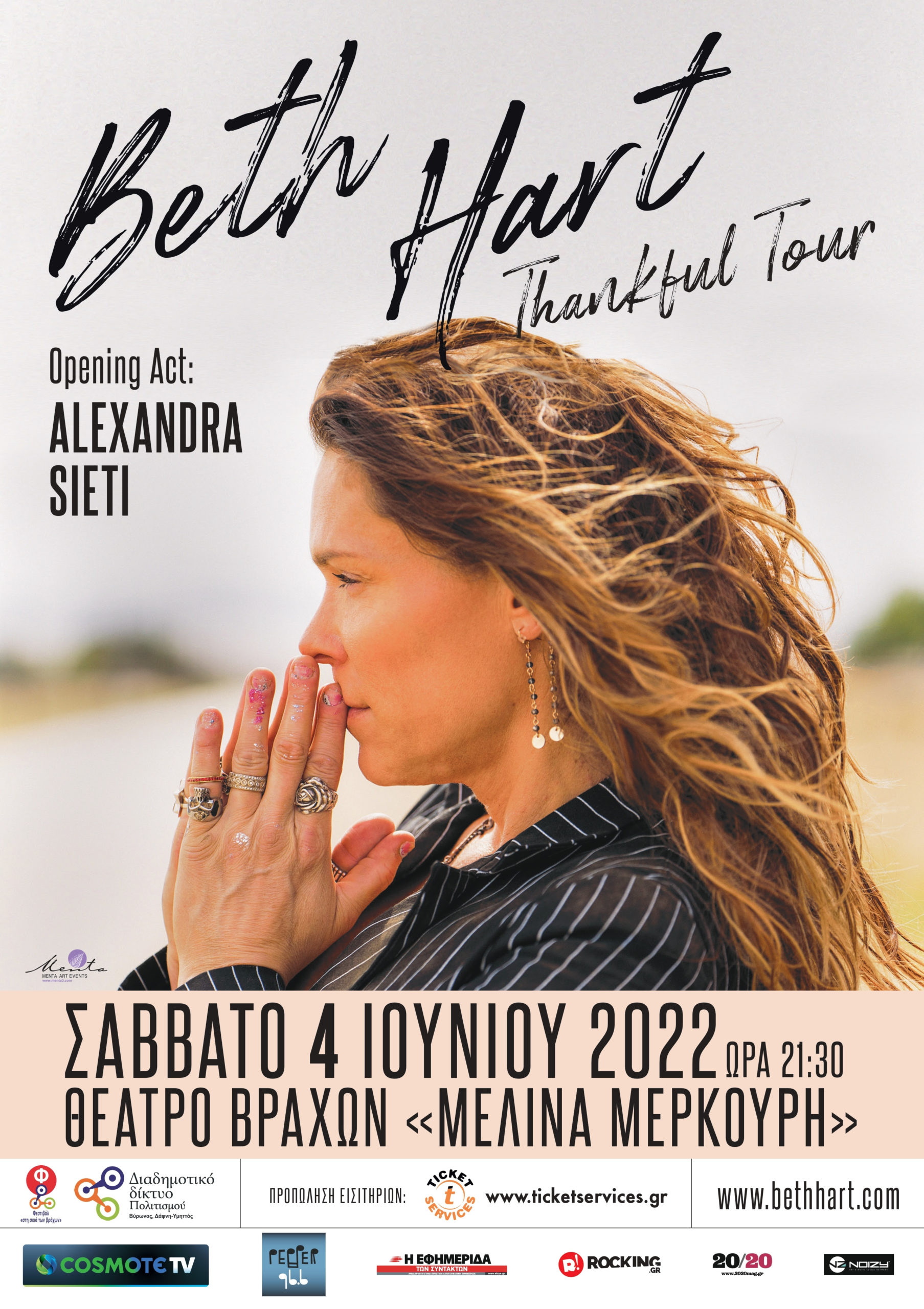 Με το νέο της album “A Tribute to Led Zeppelin”, το οποίο κυκλοφόρησε στις 25 Φεβρουαρίου, στις αποσκευές της, η Beth Hart, η τραγουδίστρια και τραγουδοποιός με τη χαρακτηριστική βραχνή φωνή και τη δυναμική σκηνική παρουσία που μένει αξέχαστη, ξεκινάει την άνοιξη το “Thankful Tour” από την Αμερική και στο πέρασμά της από την Ευρώπη προσγειώνεται για μια και μοναδική βραδιά στην Αθήνα!