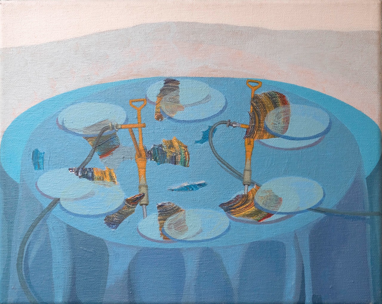 Dimitris Christidis, Nature morte with compressors, 2004, Acrylics on canvas, 24 x 30 cm