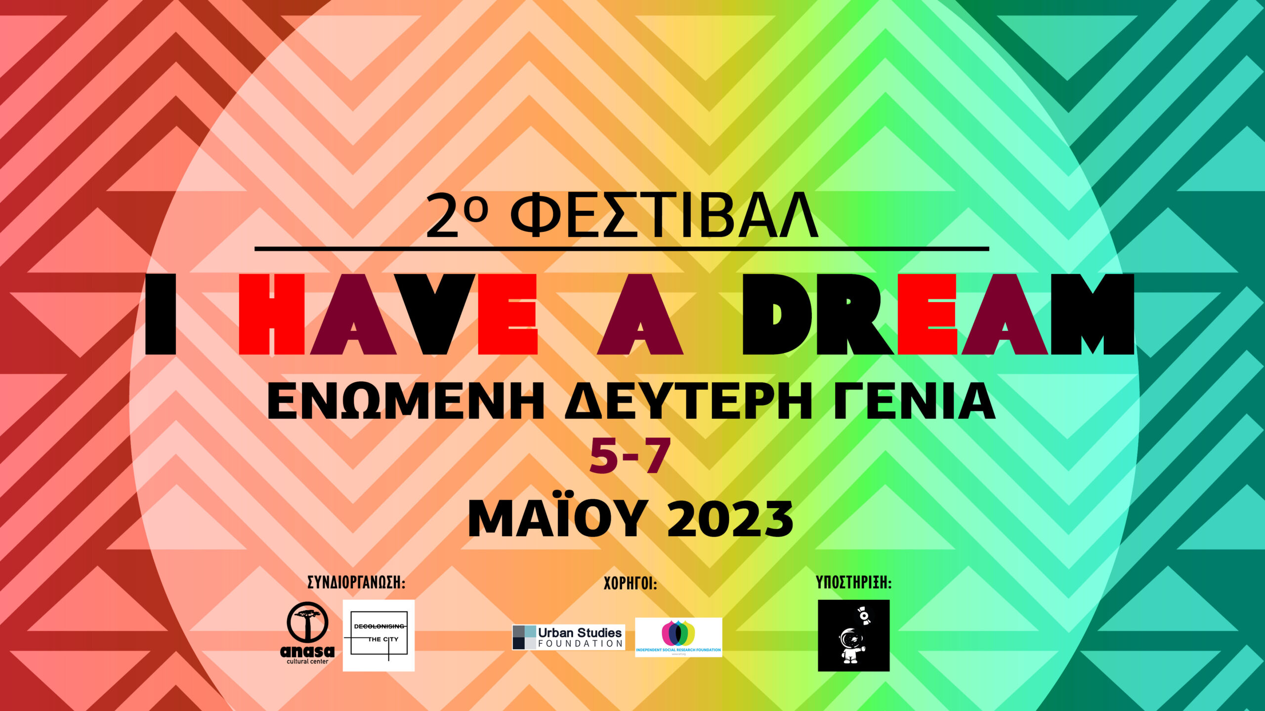 Το Πολιτιστικό κέντρο Anasa, στα πλαίσια του Μήνα Μαύρης Ιστορίας στην Ελλάδα, και με την υποστήριξη του ερευνητικού προγράμματος Decolonising the City, διοργανώνει το 2ο Φεστιβάλ «I have a dream: Ενωμένη δεύτερη γενιά», στην Κυψέλη στις 5 – 7 Μαΐου 2023.