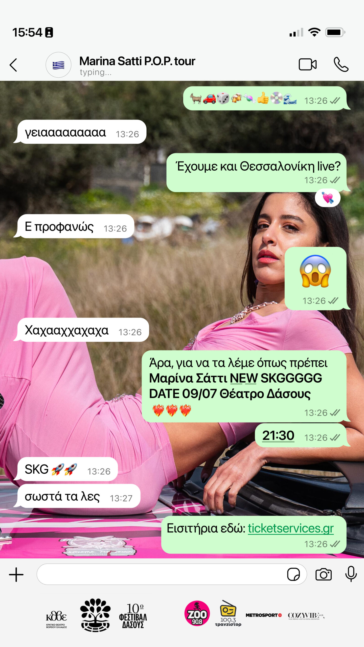 Η Μαρίνα Σάττι υπόσχεται να μας μεταφέρει στο εθιστικό καλλιτεχνικό σύμπαν της και στις συναυλίες της. Mε ένα πρόγραμμα που θα μας ταρακουνήσει, θα μας μαγέψει και θα μας κάνει να χορεύουμε στο ρυθμό της χωρίς να δίνουμε λόγο σε κανέναν. Ζουρνάς, νταούλι και 808, πολυφωνικές αλχημείες, γκάιντα και beats, trap και αισθησιασμός – η Μαρίνα Σάττι ρίχνει το Ζάρι της αυτό το καλοκαίρι και τολμά να είναι αυτή ακριβώς που νιώθει όπου κι αν βρεθεί! Ακολουθήστε την και κάντε ακριβώς το ίδιο!