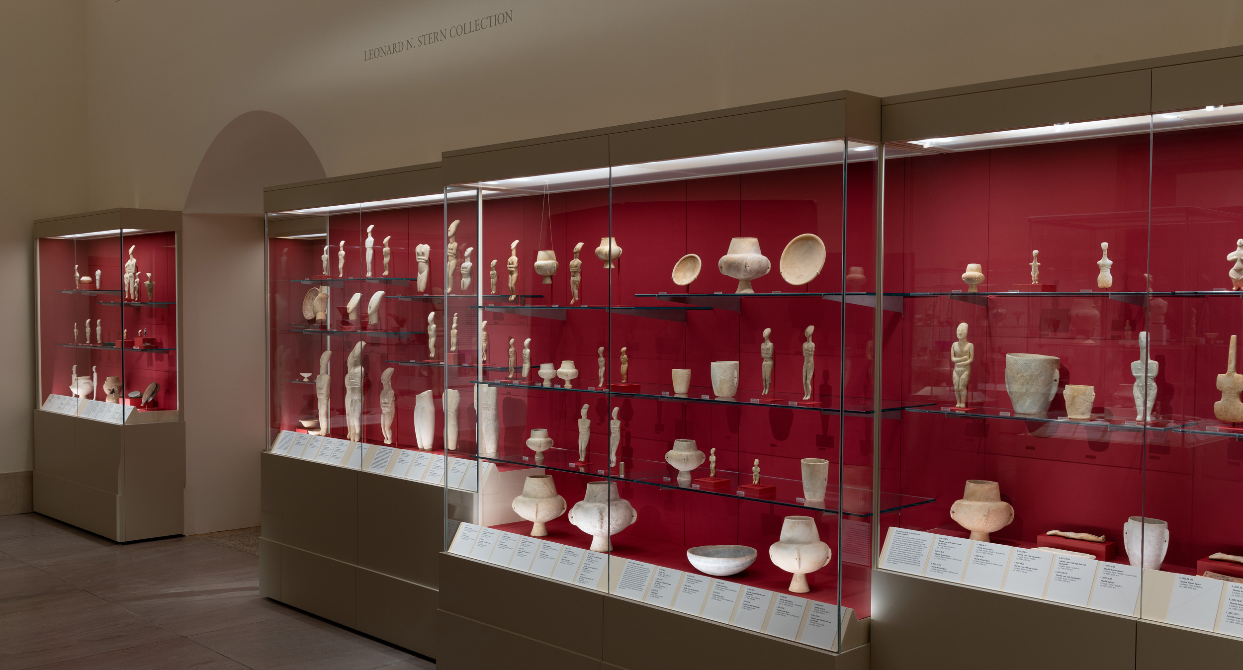 Η συλλογή Leonard N. Stern περιλαμβάνει 161 έργα που δημιουργήθηκαν στις Κυκλάδες κυρίως κατά την Πρώιμη Εποχή του Χαλκού (περ. 3200 έως 2000 π.Χ.). Αντιπροσωπεύονται σχεδόν όλοι οι βασικοί τύποι και παραλλαγές των μαρμάρινων πρωτοκυκλαδικών ειδωλίων από την Ύστερη Νεολιθική περίοδο έως το τέλος της Πρώιμης Εποχής του Χαλκού, συμπεριλαμβανομένων των βιολόσχημων, των τύπου Πλαστηρά, των υβριδικών, των τύπου Λούρου, των προκανονικών, αλλά και των κανονικών, με παραλλαγές όπως οι Καψάλων, Σπεδού, Δωκαθισμάτων, Χαλανδριανής και Κουμάσας. Η συλλογή περιλαμβάνει, επίσης, σπάνια παραδείγματα, όπως ένα σύνθετο ειδώλιο πρώιμης παραλλαγής Σπεδού.