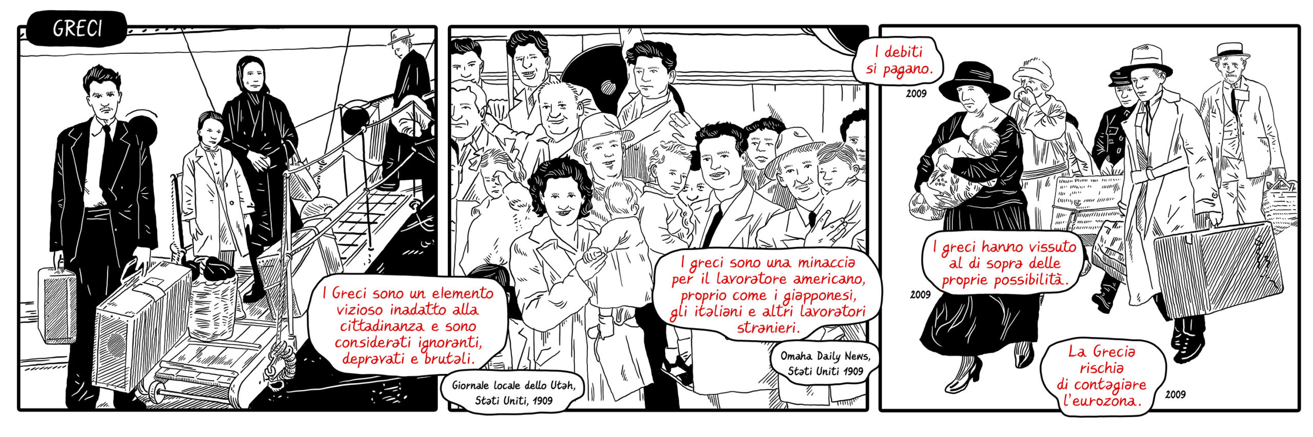 Στους εκθεσιακούς χώρους του Ιταλικού Μορφωτικού Ινστιτούτου Αθηνών (Πατησίων 47), θα εκτεθούν έργα των καλλιτεχνών Shpend Bengu (Αλβανία), Gianluca Costantini (Ιταλία), Έλενα Γώγου (Ελλάδα), Thomas Gilbert (Γαλλία), Roberta (Joe1) Muci (Ιταλία), και Marco Paschetta (Ιταλία) που έχουν δημιουργηθεί ειδικά για αυτή την έκθεση.