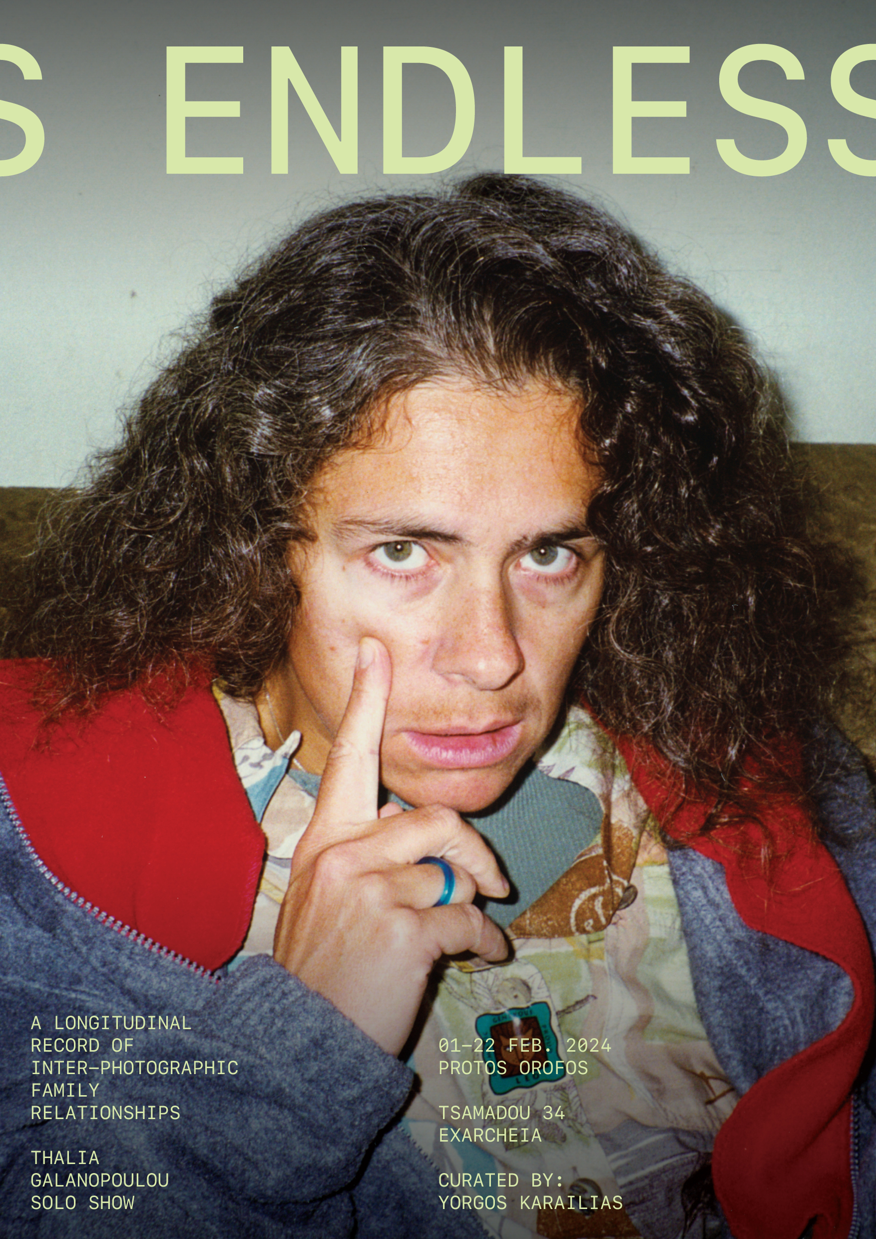 Στην ατομική έκθεση Endless της Θάλειας Γαλανοπούλου, μια κατάκοιτη γιαγιά χορεύει μινιμαλιστικά, σχεδόν διαλογιστικά, την ώρα που η ζωή μετριέται φθίνουσα πάνω σε μία ζυγαριά. Ο πατέρας υποβάλλει μία έσχατη επιστολή τακτοποίησης οφειλών κι εκκρεμοτήτων στην τράπεζα για «τη μη μετακύλιση αυτών στο τέκνο μου». Η μητέρα αποζητά μία απάντηση «τώρα! τώρα! τώρα! τώρα!» μέσα από μια αυθόρμητη performance στην κουζίνα του σπιτιού. Μία οικογένεια μέσα από στιγμές-στίγματα στον χρόνο και τον χώρο που κατέγραφε ή συνέλεγε συστηματικά η Θάλεια Γαλανοπούλου επί μία δεκαετία και που παρουσιάζει σε μια εκτενή, site-specific, πολυμεσική έκθεση στα Εξάρχεια .
