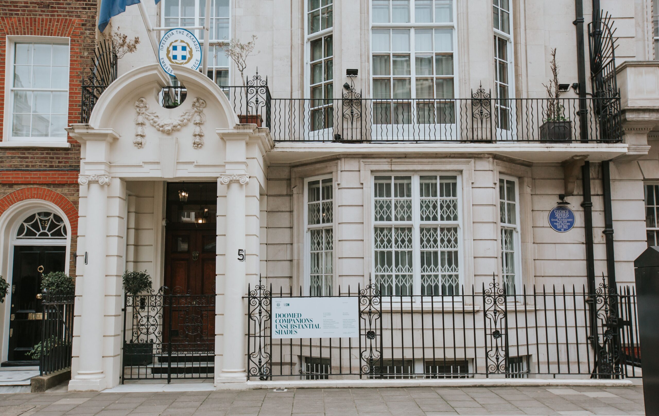 Ο ΝΕΟΝ, σε συνεργασία με την Ελληνική Πρεσβεία στο Λονδίνο, παρουσιάζει την έκθεση Μοιραίοι σύντροφοι, ανυπόστατοι ίσκιοι στο χώρο της Ελληνικής Πρεσβευτικής Κατοικίας. Η έκθεση φέρνει σε επαφή την κληρονομιά του νομπελίστα Έλληνα ποιητή και διπλωμάτη Γιώργου Σεφέρη με το έργο δώδεκα ελληνόφωνων σύγχρονων καλλιτεχνών.