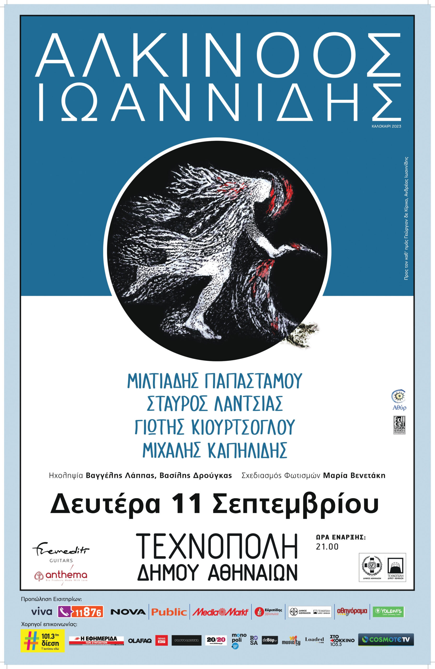 Το καλοκαίρι δεν τελειώνει για τον Αλκίνοο Ιωαννίδη και την μπάντα του, που συνεχίζουν την περιοδεία τους σταθμεύοντας στο πιο κεντρικό σημείο της Αθήνας, στην Τεχνόπολη Δήμου Αθηναίων, για μια μεγάλη συναυλία τη Δευτέρα 11 Σεπτεμβρίου.
