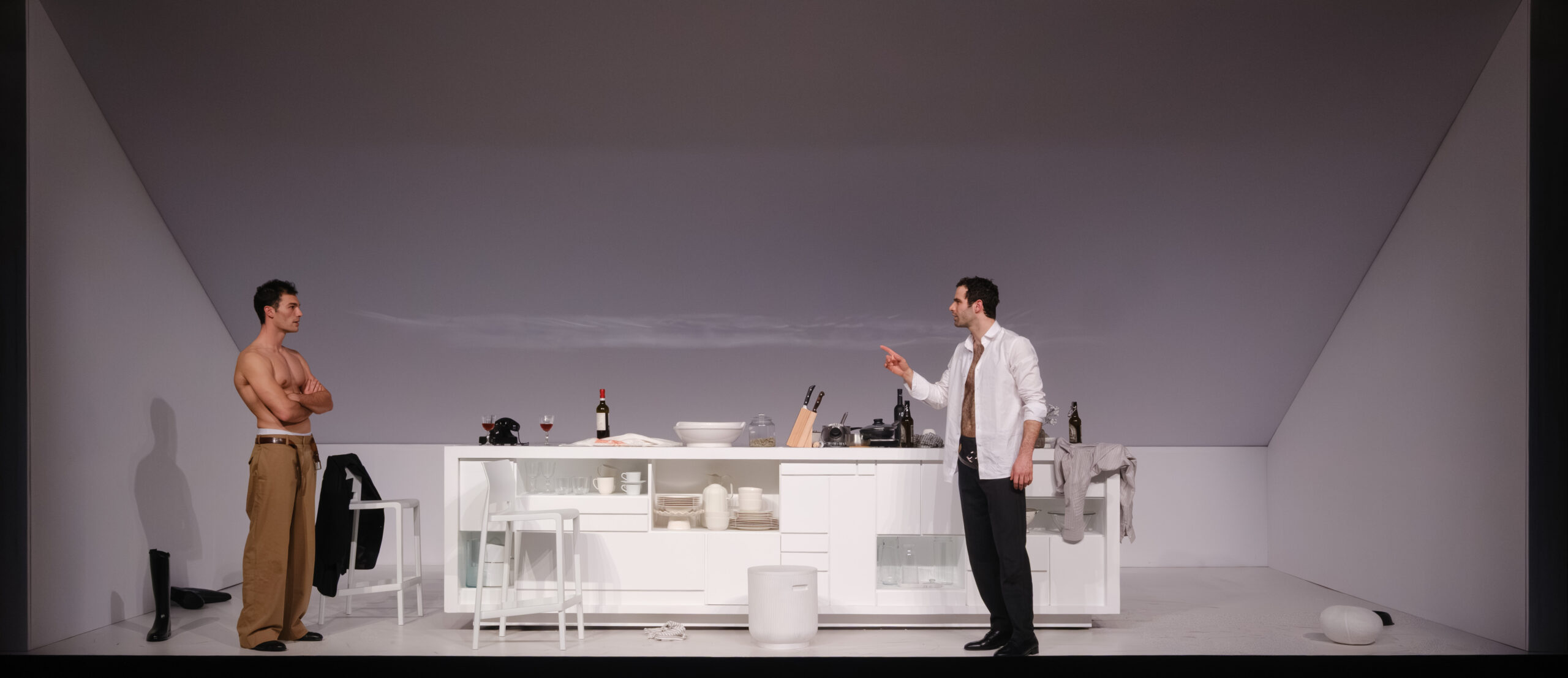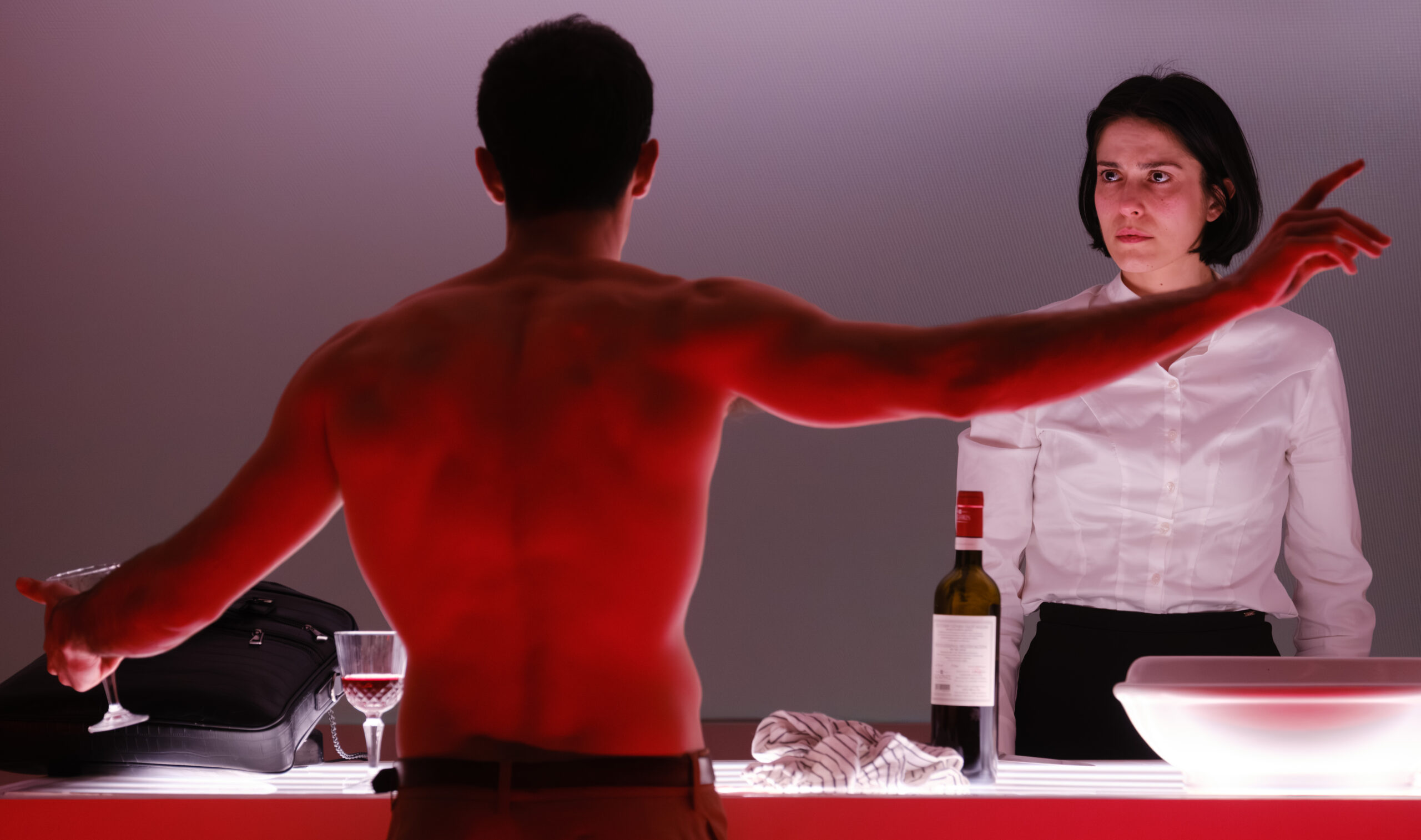 Η ένταση ανάμεσα στους δύο άνδρες είναι σωματική, ψυχική αλλά και βαθιά πολιτική. Δεν αφορά μόνο το ποιος επιθυμεί ποιον, αλλά το ποιος έχει το δικαίωμα να επιθυμεί, ποιος μπορεί να εκτεθεί και ποιος τελικά θα επιβιώσει. Η εξουσία δεν ασκείται μονομερώς: μετακινείται διαρκώς, αλλάζει χέρια, γίνεται πότε παιχνίδι και πότε απειλή. Η επιθυμία, η έλξη και ο ανταγωνισμός δεν αντιμετωπίζονται ως ιδιωτικά συναισθήματα, αλλά ως μηχανισμοί κυριαρχίας, δοκιμασίας και επιβολής.