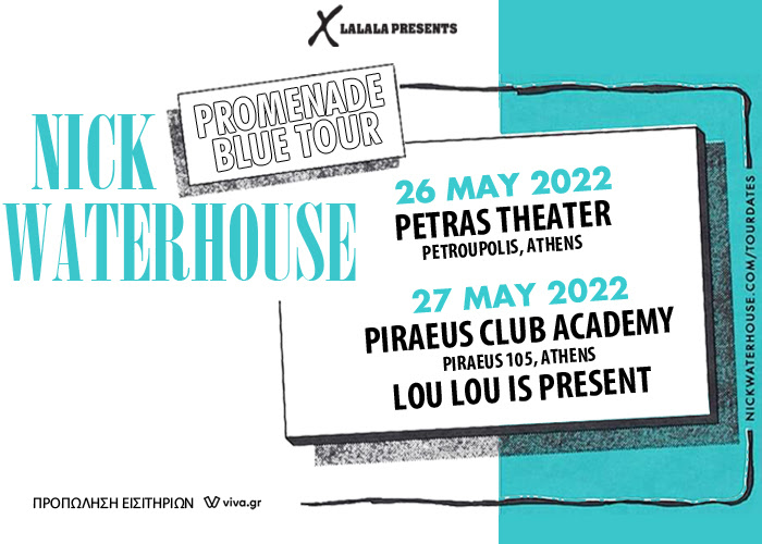 Οι προηγούμενες sold out εμφανίσεις του Nick Waterhouse στην Ελλάδα, προμηνύουν ότι οι δύο βραδιές, στις 26 Μαΐου στο Θέατρο Πέτρας και στις 27 Μαΐου στο Piraeus Club Academy (Lou Lou is Present), θα είναι συναρπαστικές, τόσο για το κοινό που τον έχει αγκαλιάσει όσο και για τον ίδιο που μοιάζει να το έχει αγαπήσει.