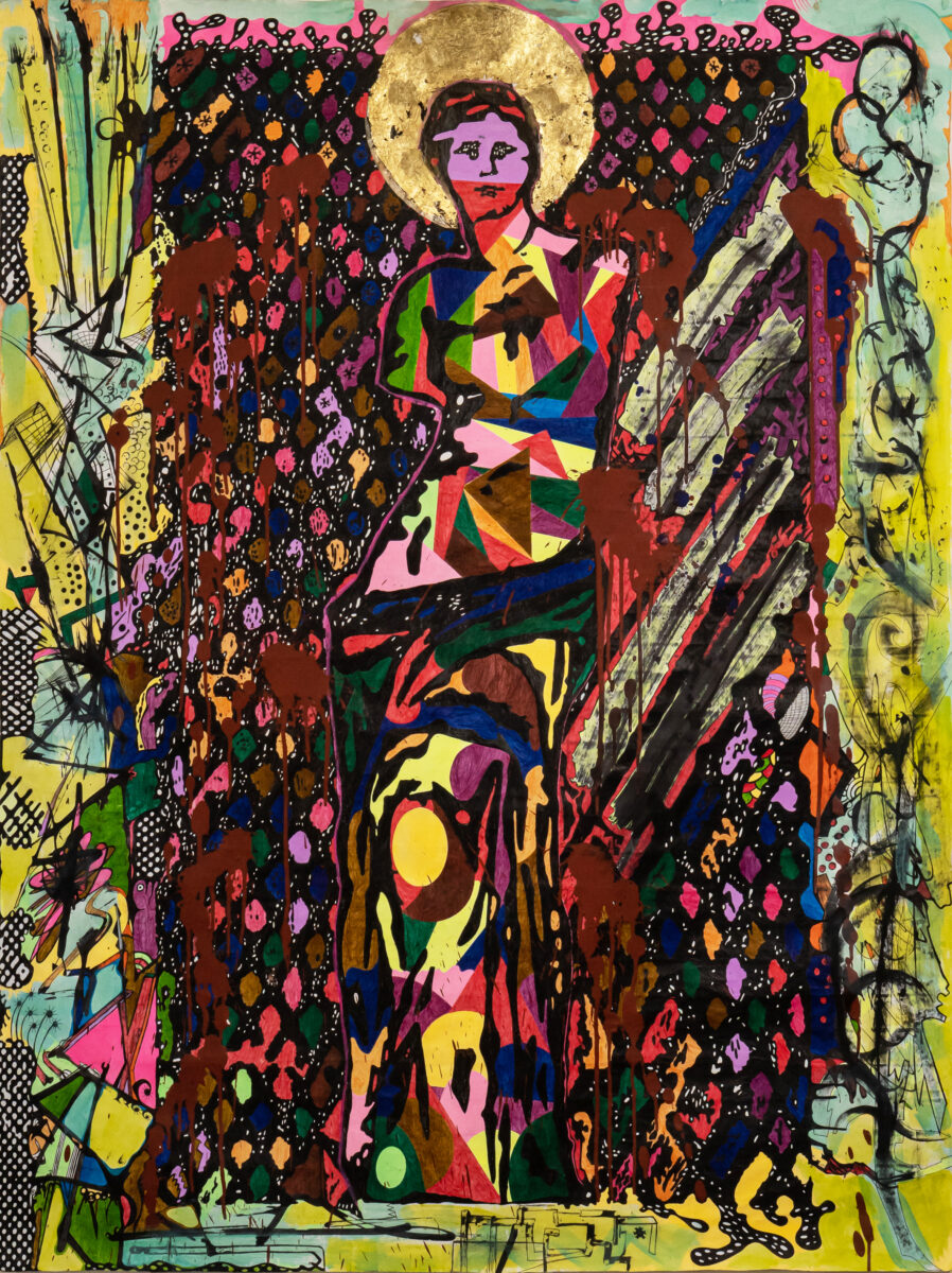 Η θεά – σύμβολο πια της κλεμμένης ομορφιάς που εκπατρισμένη με τη βία αντί να απολαμβάνει τον Κυκλαδίτικο ήλιο στην ιδιαίτερη πατρίδα της, πουλάει έναντι ευτελούς αντιτίμου το αιώνιο κάλος της σκλαβωμένη μέσα στους τοίχους της πολυτελούς κατοικίας της. Ίσως περισσότερο τυχερή, θα μπορούσε να πει κανείς συγκριτικά με τα χιλιάδες κορίτσια – γυναίκες που εκπατρίζονται καθημερινά αναζητώντας μια καλύτερη ζωή, καταλήγοντας σε χέρια άπληστων για χρήμα και εξουσία ανθρώπων που πουλούν την κλεμμένη τους νιότη και ομορφιά κάτω από άθλιες συνθήκες. Η Αγία Αφροδίτη γίνεται αλληγορικά προστάτιδα και σύμμαχος αυτών των συνανθρώπων μας. Η Αγία Αφροδίτη είναι η αλληλεγγύη. Η Αγία Αφροδίτη Είμαστε Όλοι Εμείς.