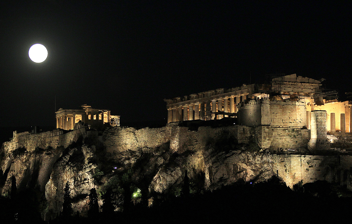 Η πανσέληνος του Αυγούστου λάμπει πάνω από την Ακρόπολη, Αθήνα, Τετάρτη 21 Αυγούστου 2013. Περισσότεροι από 100 αρχαιολογικοί χώροι, μνημεία και μουσεία στην Αττική και σε όλη την Ελλάδα θα παραμείνουν ανοιχτοί έως αργά το βραδυ της Τετάρτης, με αφορμή την Αυγουστιάτικη Πανσέληνο. ΑΠΕ-ΜΠΕ/ΑΠΕ-ΜΠΕ/ΣΥΜΕΛΑ ΠΑΝΤΖΑΡΤΖΗ