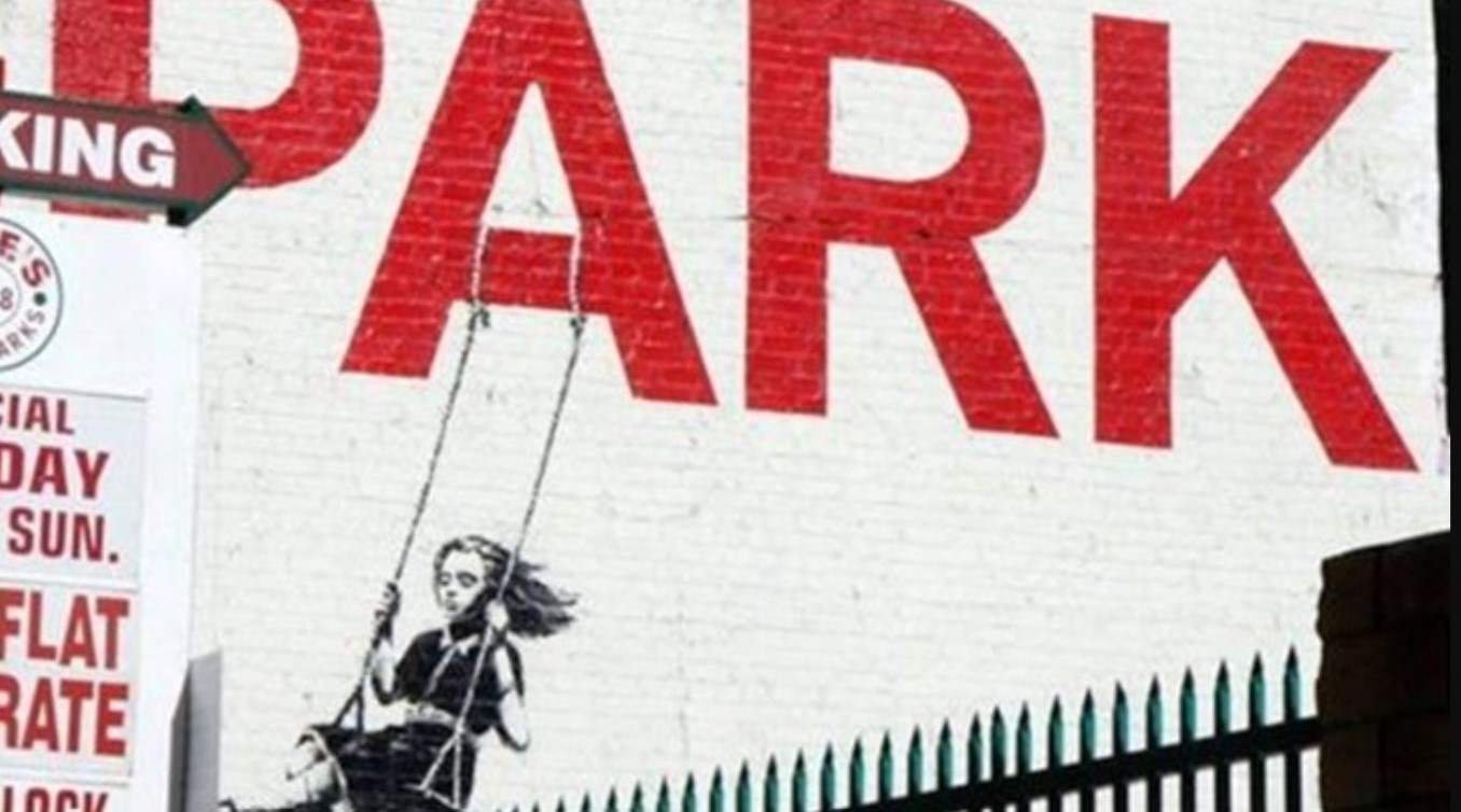 Κτίριο στο Λος Άντζελες με έργο του Banksy που απεικονίζει κορίτσι σε κούνια που φαίνεται να κρέμεται από το γράμμα Α σε προϋπάρχουσα πινακίδα «Parking» θα πωληθεί τον Οκτώβριο σε δημοπρασία.