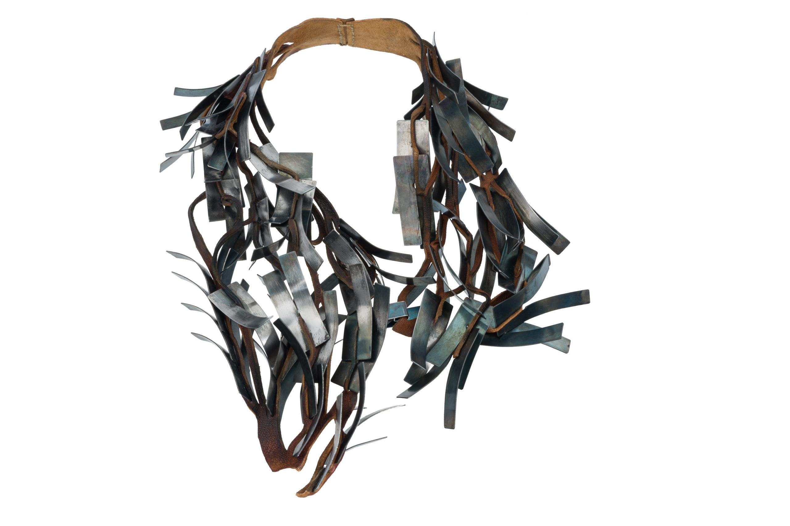 Χρύσα Χατζηκωνσταντινίδου, Φυλαχτά, καρφίτσες, έβενος, ύφασμα, ασήμι