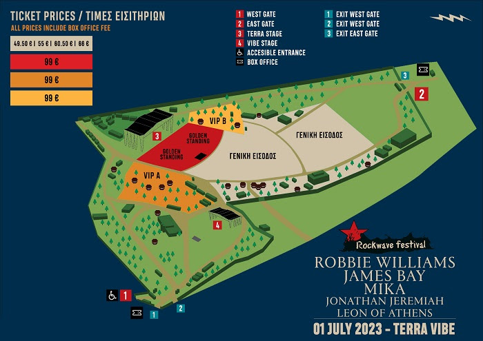 Με κάθε 3 VIP ή Golden Standing εισιτήρια παρέχεται 1 δωρεάν Θέση Στάθμευσης/Parking.