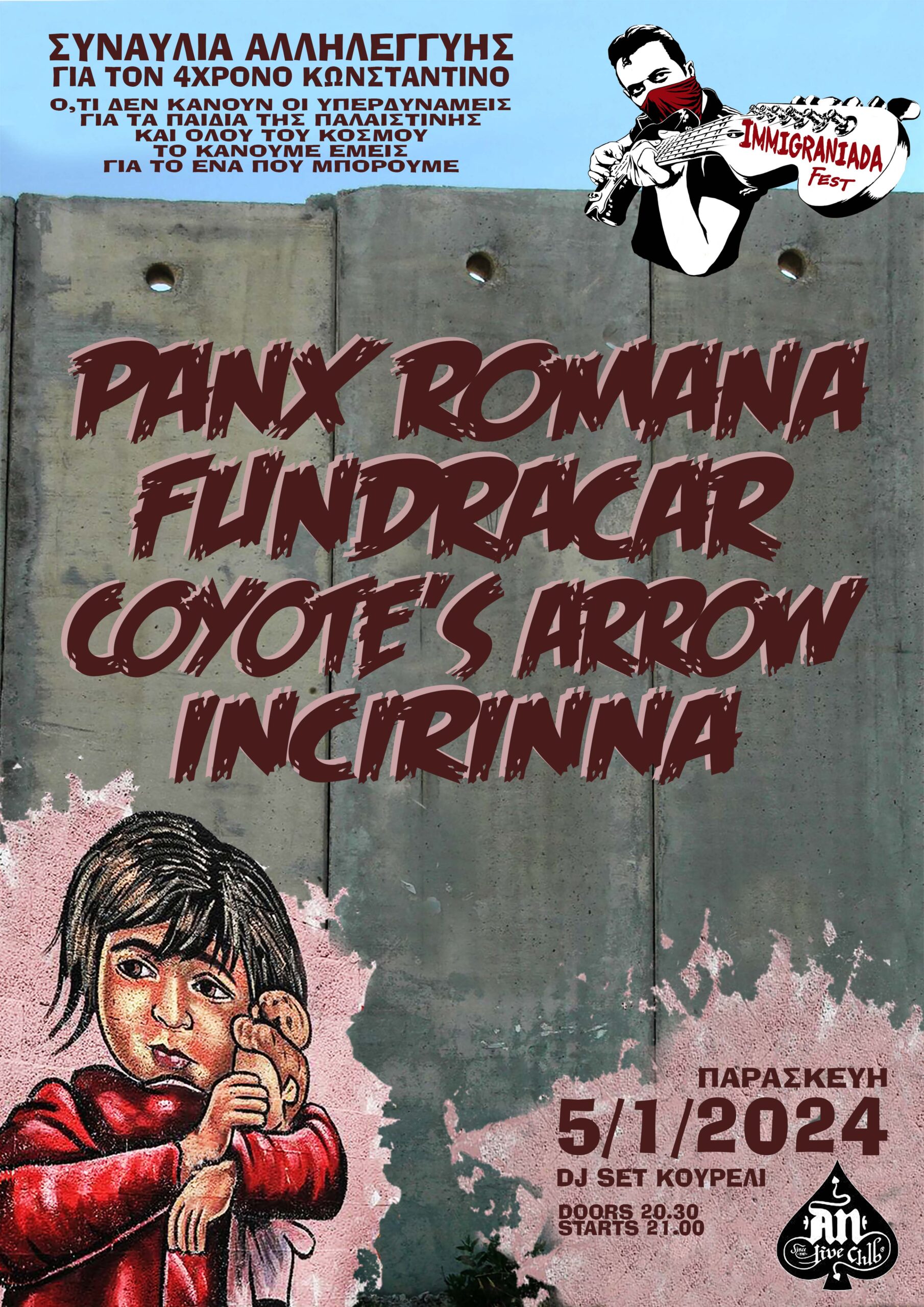 Immigraniada Festival, AN Club, Panx Romana, Fundracar, Coyote’s Arrow, Incirinna και η οικογένεια του μικρού Κωνσταντίνου