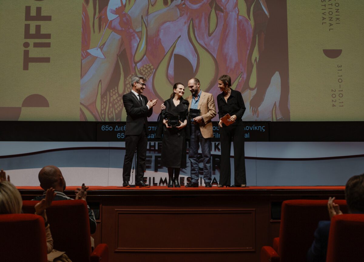 Το κοινό στην κατάμεστη αίθουσα του Ολύμπιον καλωσόρισαν η γενική διευθύντρια του Φεστιβάλ, Ελίζ Ζαλαντό, και ο καλλιτεχνικός διευθυντής, Ορέστης Ανδρεαδάκης, προλογίζοντας τους δύο εκλεκτούς καλεσμένους της βραδιάς. «Είμαστε απόψε εδώ για να υποδεχτούμε και να τιμήσουμε δυο εξαιρετικούς καλλιτέχνες. Η Ζιλιέτ Μπινός κι ο Ρέιφ Φάινς δεν είναι απλώς σπουδαίοι ηθοποιοί: είναι θαρραλέοι εξερευνητές των ανθρωπίνων αισθημάτων, πρωτοπόροι της τέχνης τους, αληθινοί αφηγητές μοναδικών ιστοριών. Η Ζιλιέτ Μπινός είναι μοναδική. Στο «Τρία χρώματα: Η Μπλε ταινία» του Κριστόφ Κισλόφσκι, μας στοίχειωσε στον ρόλο μιας γυναίκας που παλεύει με ένα αβάσταχτο πένθος. Στο «Chocolat» του Λάσε Χάλστρομ, φώτισε την οθόνη με τη γοητεία και το βάθος της. Στο «Οι εραστές της γέφυρας» του Λεός Καράξ, απέδειξε για μια ακόμη φορά την ερμηνευτική της τόλμη. Από τον Μίκαελ Χάνεκε στον Αμπάς Κιαροστάμι κι από τον Ζαν-Λικ Γκοντάρ στον Ντέιβιντ Κρόνενμπεργκ, η Ζιλιέτ Μπινός έχει σταθεί δίπλα σε ορισμένους από τους σημαντικότερους σκηνοθέτες των ημερών μας όχι ως μούσα, αλλά ως συνδημιουργός και συνοδοιπόρος, βοηθώντας τις ταινίες τους να ανυψωθούν σε αριστουργήματα», ανέφεραν αρχικά για τη Ζιλιέτ Μπινός.