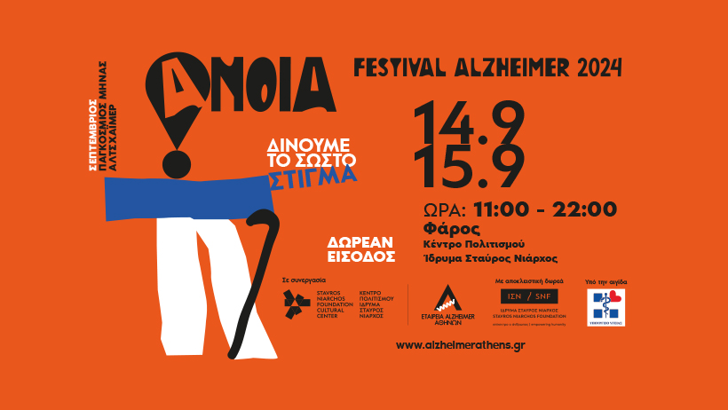 Περισσότερες πληροφορίες για το Festival Alzheimer 2024 στις ιστοσελίδες www.alzheimerathens.gr και www.snfcc.org.