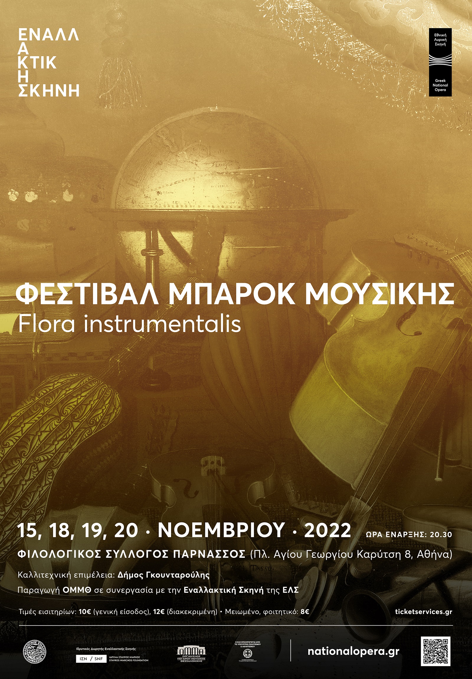 Το Φεστιβάλ Μπαρόκ Μουσικής, o επιτυχημένος θεσμός του Μεγάρου Μουσικής Θεσσαλονίκης, έρχεται για πρώτη φορά στην Αθήνα για να ταξιδέψει το κοινό στον μαγευτικό κόσμο του μπαρόκ. Κάτω από τον γενικό τίτλο Flora instrumentalis, το Φεστιβάλ φέρνει έναν «εξωτικό κήπο» από μπαρόκ όργανα και οργανική μουσική στην ιστορική αίθουσα του Φιλολογικού Συλλόγου Παρνασσός (Πλ. Αγίου Γεωργίου Καρύτση 8, Αθήνα) στις 15, 18, 19 και 20 Νοεμβρίου 2022. Το Φεστιβάλ αποτελεί παραγωγή του ΟΜΜΘ σε συνεργασία με την Εναλλακτική Σκηνή της ΕΛΣ.