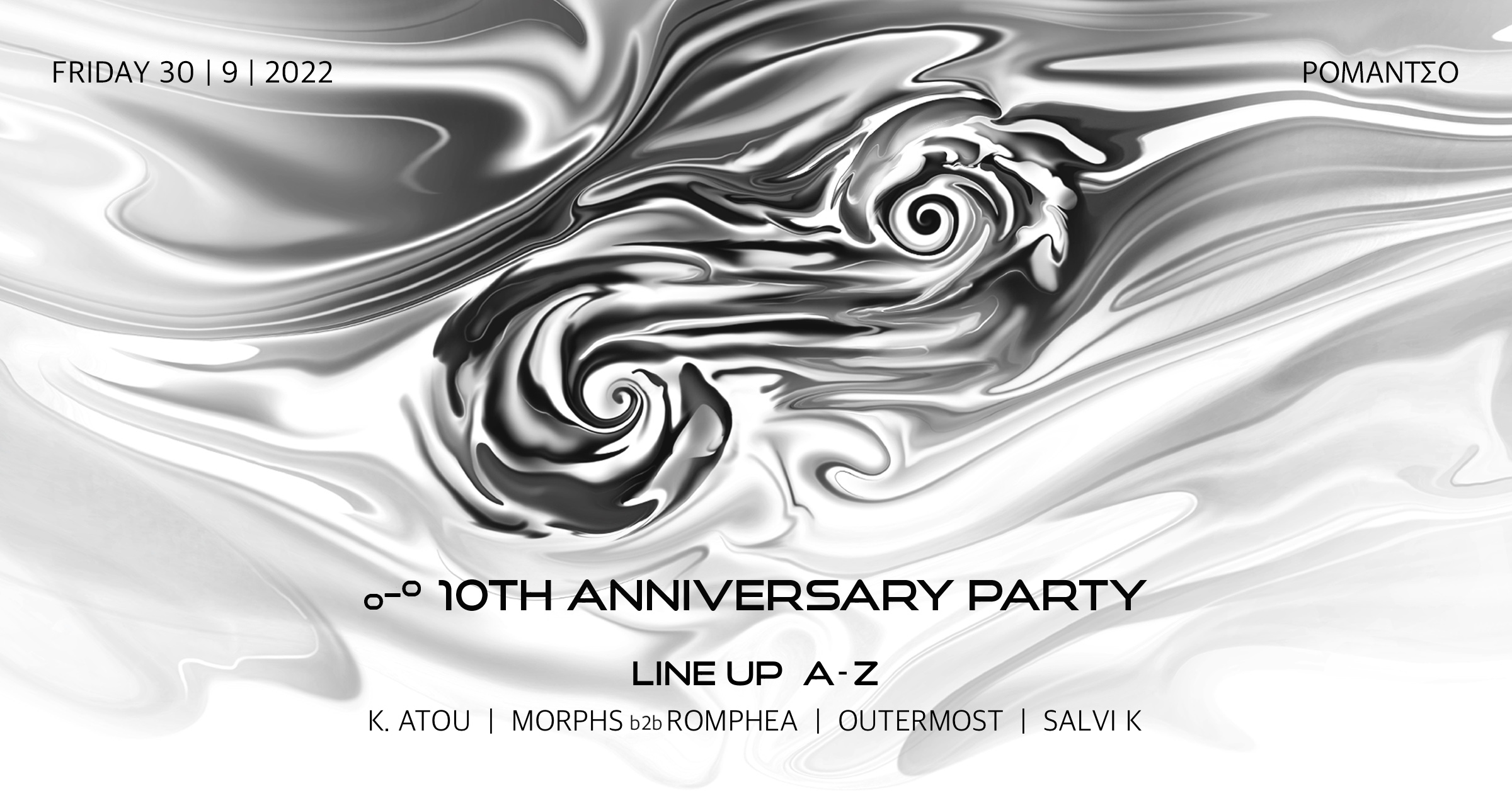 Φέτος, το ₒ-ᵒ συμπληρώνει 10 γήινα χρόνια κοντά μας! Την Παρασκευή, 30 Σεπτεμβρίου 2022, ελάτε στο Ρομάντσο για να γιορτάσουμε τη δέκατη πλήρη περιστροφή του γύρω από τον ήλιο μας, σε ένα μεταμεσονύκτιο πάρτυ γενεθλίων γεμάτο απόκοσμους ήχους και ονειρικές βιντεοπροβολές.
