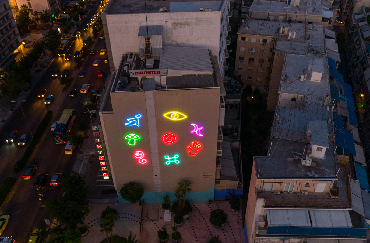 Η Στέγη του Ιδρύματος Ωνάση παρουσιάζει το νέο έργο του Άγγελου Πλέσσα, «Φυλαχτό όλων των Όντων», μια in situ εγκατάσταση από νέον, μια νέα τοιχογραφία-φυλαχτό για όλους μας.