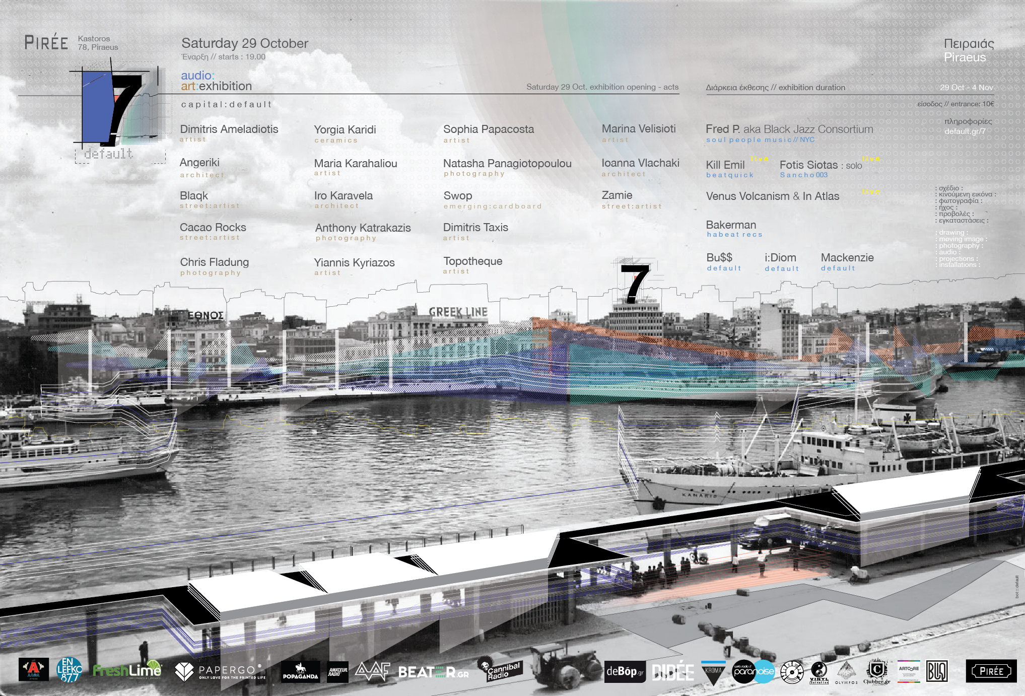 Το έβδομο επεισόδιο του default πραγματοποιείται για πρώτη φορά στον Πειραιά από 29 Οκτωβρίου έως 4 Νοεμβρίου στο ξεχωριστό πολυχώρο του Pirée, στα παλιά λαμαρινάδικα. Φιλοξενούμενο στα δύο επίπεδα του χώρου, το default επιχειρεί να φέρει σε επαφή ένα ποικιλόμορφο κοινό με καλλιτεχνικές ανησυχίες που ψάχνει σύγχρονα οπτικοακουστικά ερεθίσματα. Σε αυτό το επεισόδιο οι καλλιτέχνες καλούνται να δημιουργήσουν και να εμπνευστούν από τον τίτλο capital:default και να παρουσιάσουν την δικιά τους προσέγγιση και οπτική.
