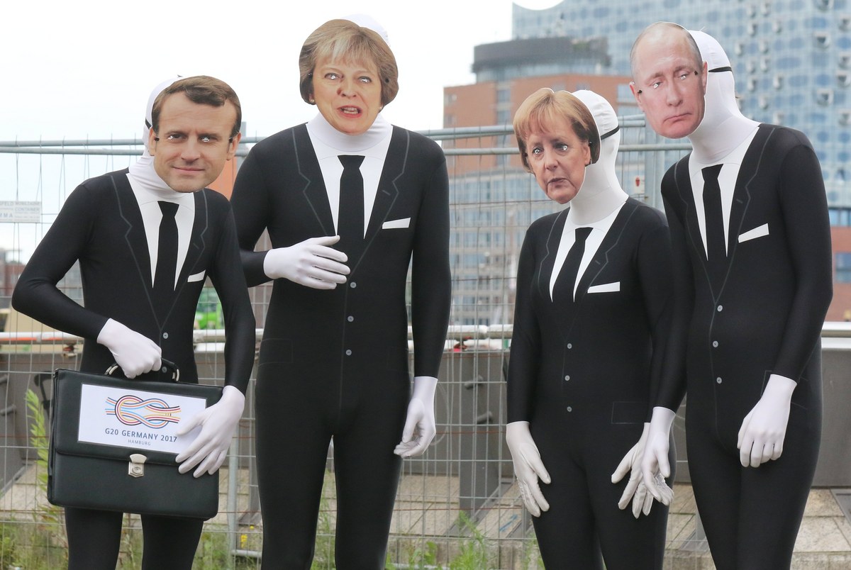 Μεταξύ άλλων, η ακτιβιστική ομάδα Attac δημιούργησε μία μεγάλη λαστιχένια υδρόγειο σφαίρα, ενώ κάποιοι από αυτούς φόρεσαν μάσκες των Theresa May, Vladimir Putin, Angela Merkel και Emmanul Macron. Την πορεία διαμαρτυρίας κατέγραψε με τον φακό του ο φωτογράφος Focke Strangmann: