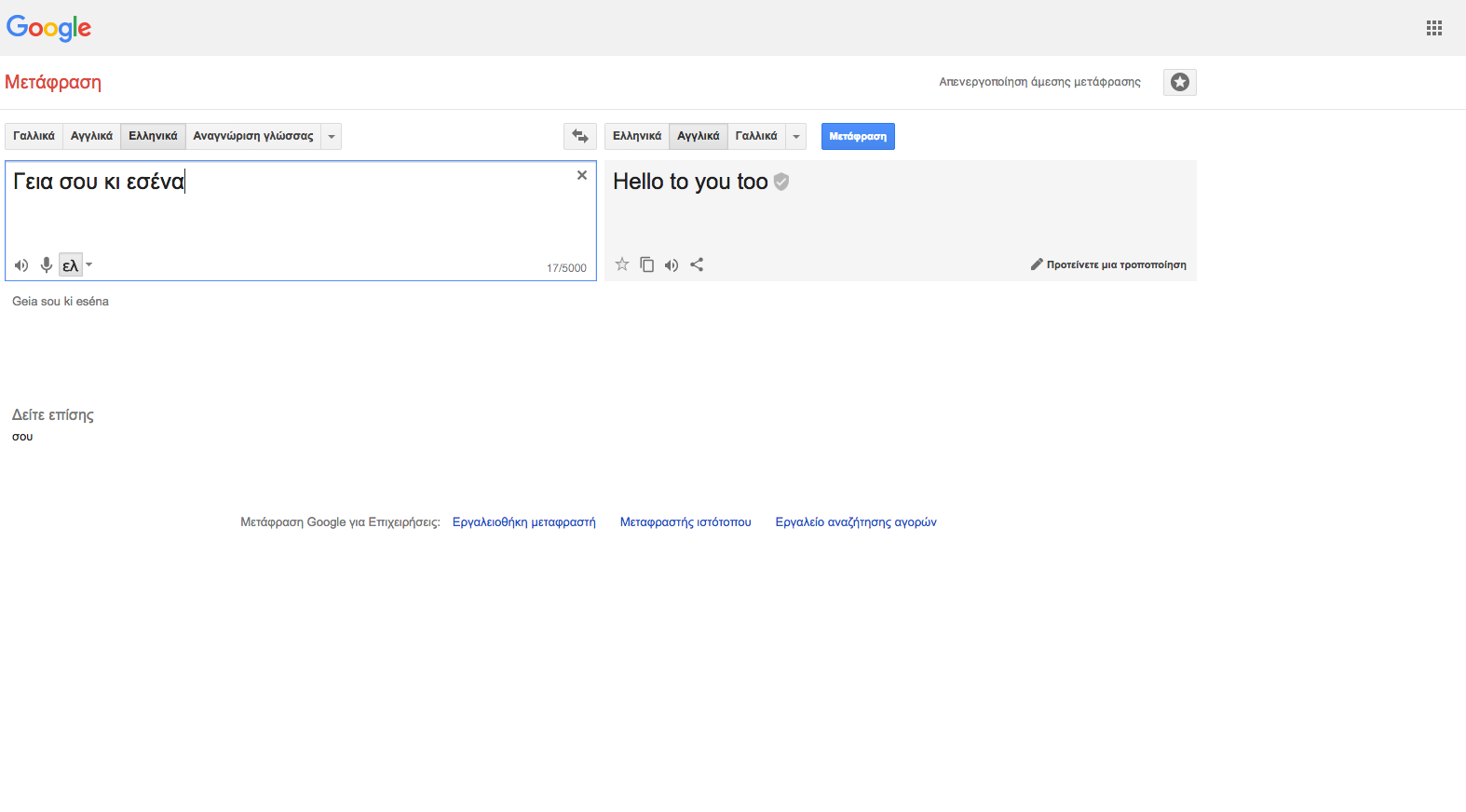 Διαθέσιμη και στην Ελληνική γλώσσα είναι πλέον η εφαρμογή τεχνολογίας νευρωνικής μετάφρασης Translate της Google. Συγκεκριμένα, η μετάφραση ανάμεσα στα Αγγλικά και τα Ελληνικά -και αντίστροφα- θα είναι ακριβέστερη και συντακτικά ορθότερη, αφού πλέον θα μεταφράζονται ταυτόχρονα ολόκληρες προτάσεις αντί τμήματα αυτών.