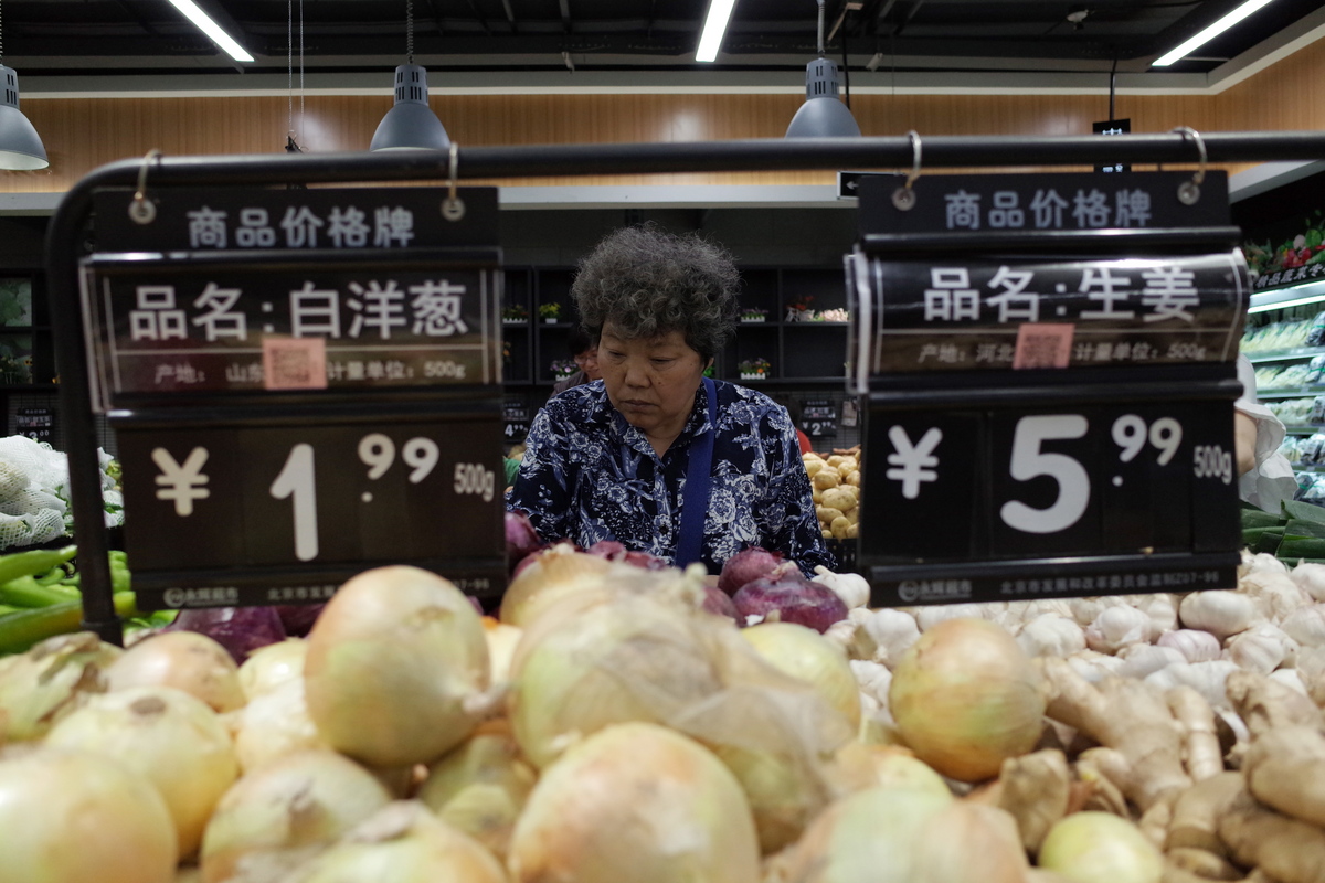 epa07607700 A Chinese consumer selects vegetables at a super market of Beijing, China, 28 May 2019. According to media reports, middle-class citizens are expressing their concerns over how the China-US trade war will affect their lives as food prices and business costs continue to rise. EPA/WU HONG