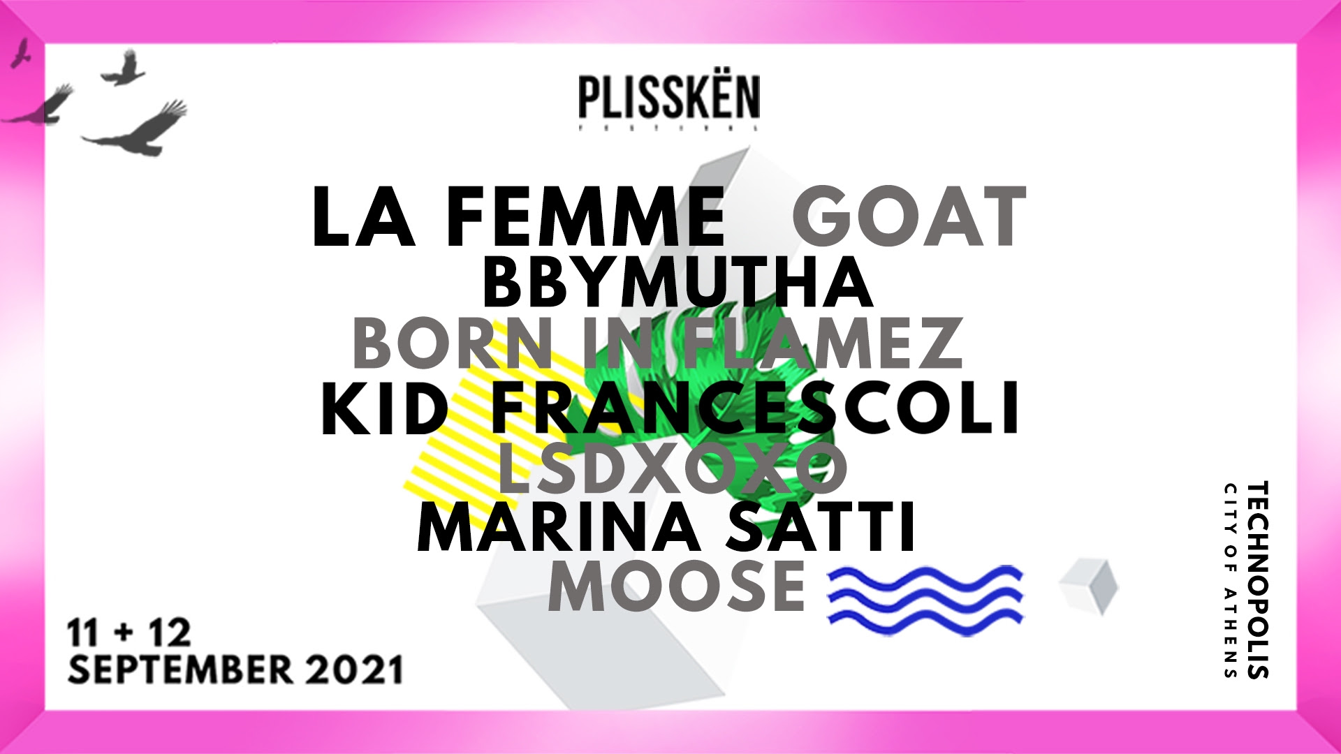 | To Plisskën Festival, το οποίο η Guardian κατανόησε απολύτως και αποκάλεσε “A true celebration of noise”, είναι ακριβώς αυτό: ένα διήμερο πάρτι ήχου. Έχοντας αποδείξει με συνέπεια πως είναι ένα από τα κορυφαία ελληνικά μουσικά φεστιβάλ της τελευταίας δεκαετίας, έχει φανταστική ενέργεια, ανακατεύει μουσικά είδη με άποψη και σκοπό, και έχει εξαιρετικό, πολυσυλλεκτικό προγραμματισμό και μουσικό line up, ευλαβικά προσανατολισμένο στο σήμερα. Το Plisskën Festival επιστρέφει στις 11 & 12 Σεπτεμβρίου στην Τεχνόπολη Δήμου Αθηνών. Headliners στο φετινό Plisskën θα είναι η superchic μπάντα-φαινόμενο του psych-rock LA FEMME, από τα πολυαναμενόμενα και σπάνια live acts, αλλά και η αινιγματική psychedelic /experimental rock κολεκτίβα των GOAT. |