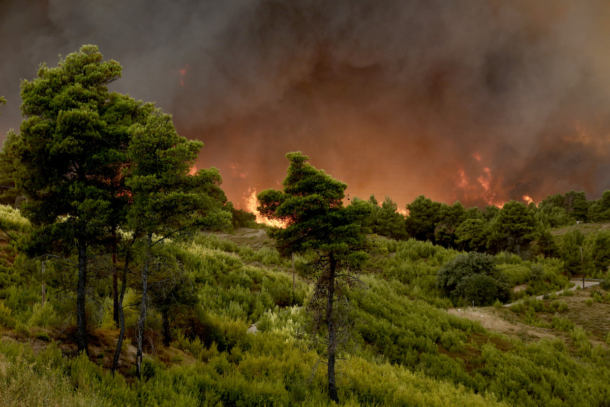 Πυκνοί καπνοί διακρίνονται κατά τη διάρκεια της πυρκαγιάς στον οικισμό Δροσοπηγή, Αθήνα, Πέμπτη 5 Αυγούστου 2021. Τρεις σοβαρές αναζωπυρώσεις που έχουν πάρει διαστάσεις στη Βαρυμπόμπη έχουν προκαλέσει μεγάλη κινητοποίηση της Πυροσβεστικής. Η πιο σημαντική σύμφωνα με την τελευταία ενημέρωση, είναι προς το Ολυμπιακό χωριό γι αυτό και εστάλη μήνυμα από το 112 για εκκένωση της Ιπποκράτειου Πολιτείας και της Δροσοπηγής. ΑΠΕ-ΜΠΕ/ΑΠΕ-ΜΠΕ/ΓΙΑΝΝΗΣ ΚΟΛΕΣΙΔΗΣ