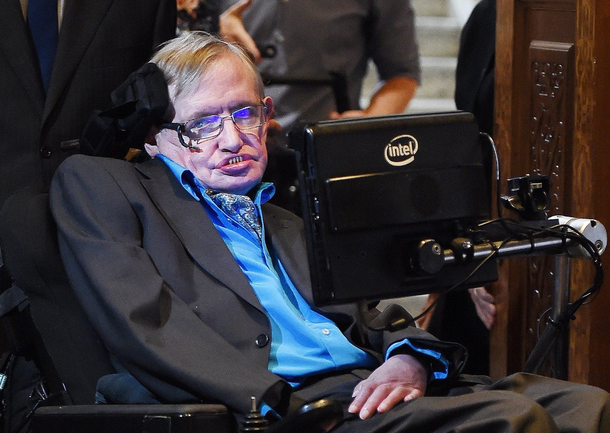 epa04854135 British scientist Stephen Hawking arrives for a press conference in London, Britain, 20 July 2015. Russian billionaire Milner and British scientist Hawking announced a global science initiative for the search of civilised life in the universe. EPA/ANDY RAIN
