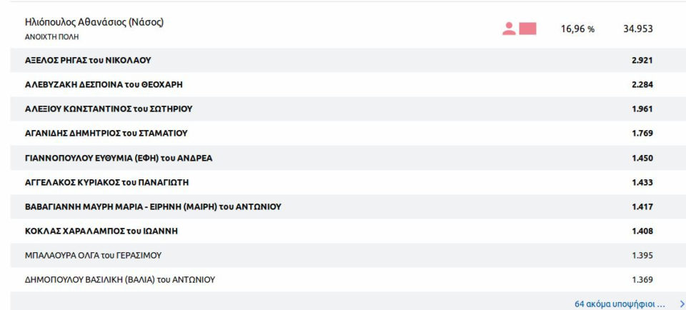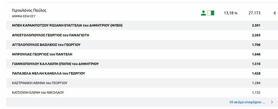 Με ενσωματωμένο σχεδόν το 100% των τμημάτων (934 από 943) σύμφωνα με το σύστημα της Singular Logic, στον δήμο Αθηναίων: