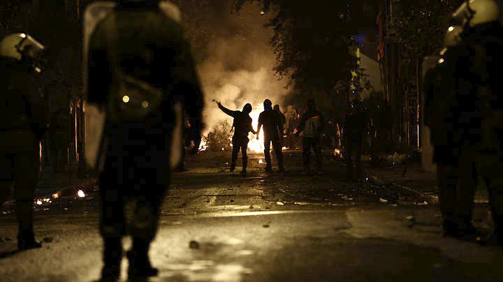 Νεαρά άτομα, που φορούσαν κουκούλες, βγήκαν από το Πολυτεχνείο και επιτέθηκαν με βόμβες μολότοφ και πέτρες σε διμοιρίες των ΜΑΤ. Λίγη ώρα αργότερα, έγινε νέα επίθεση με μολότοφ σε βάρος διμοιρίας των ΜΑΤ, που βρισκόταν στην οδό Χαριλάου Τρικούπη.