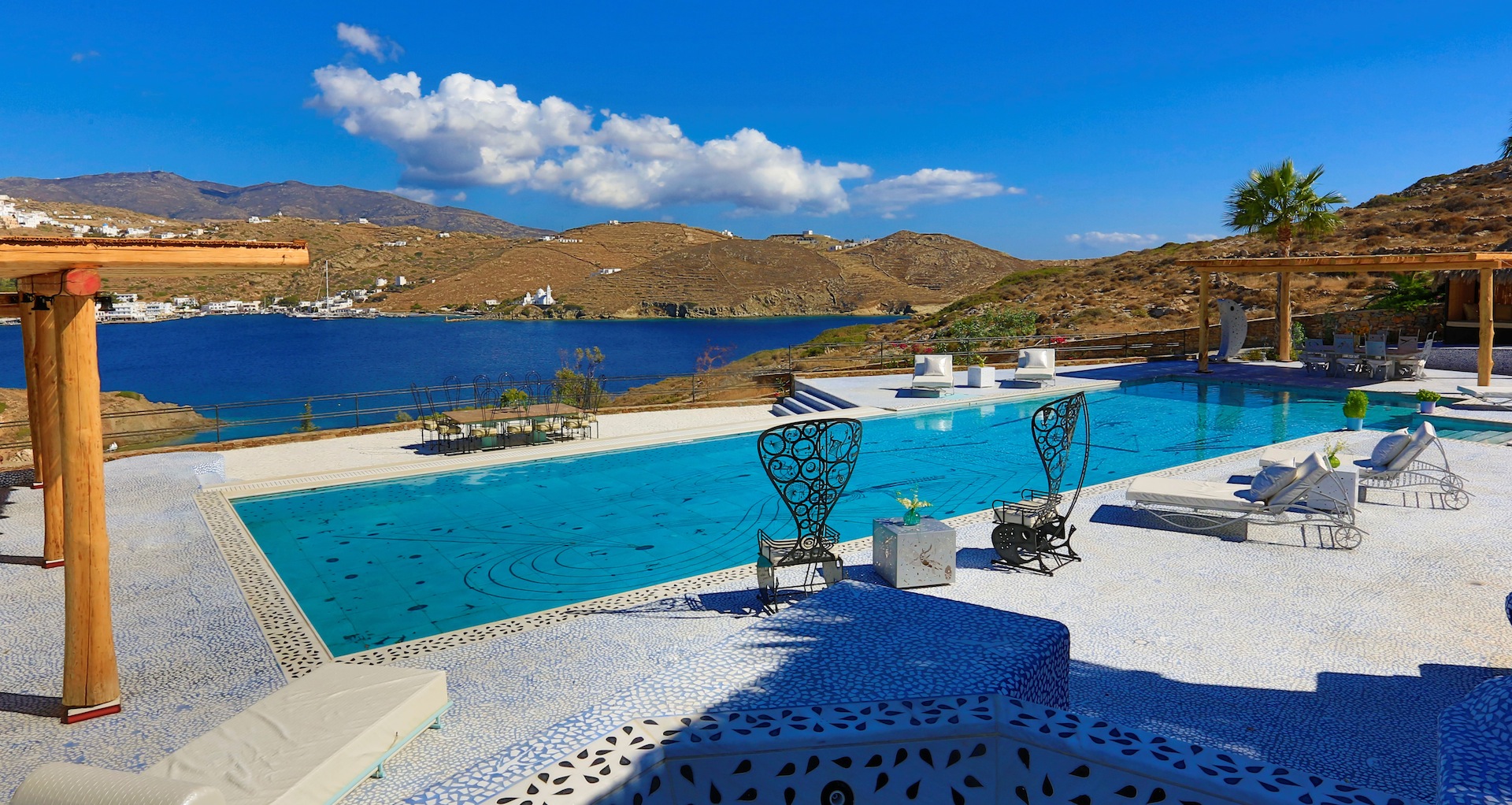 Οι δεκατέσσερις σουίτες στο Αγκαλιά Luxury Suites είναι μοναδικά διακοσμημένα σε παλέτα των μπλε και πράσινα για να αντικατοπτρίζουν την τυρκουάζ θάλασσα και λόφους που δένει γύρω από το νησί καταφύγιο. Μέσα ασβεστωμένους τοίχους και τους τονισμένους θόλους από ντόπιο μάρμαρο και πέτρες υπαινίσσονται παραδοσιακό κυκλαδίτικο στυλ, ενώ τα αυθεντικά έργα τέχνης προσθέτει μια σύγχρονη αισθητική. Η τέχνη δεν σταματά στους τοίχους, όμως, όπως κάθε σουίτα διαθέτει επίσης ένα του-ένα είδος όροφο πάνω από το οποίο τα κρεβάτια φαίνεται να ανασταλεί. Όσοι δεν έχουν την πολυτέλεια μιας από τις τρεις ιδιωτικές σουίτες πισίνα μπορούν να χαλαρώσουν από την πισίνα γλυκού νερού, που περιβάλλεται από φοίνικες και με θέα στη θάλασσα, το λιμάνι και την πόλη. Καθώς η ημέρα φτάνει στο τέλος της, οι επισκέπτες μπορούν να χαιρετούν τον ήλιο με τακτικές συνεδρίες γιόγκα και διαλογισμού στο σκεπτικό. Pool Suites είναι διαθέσιμα από € 198 ανά διανυκτέρευση.