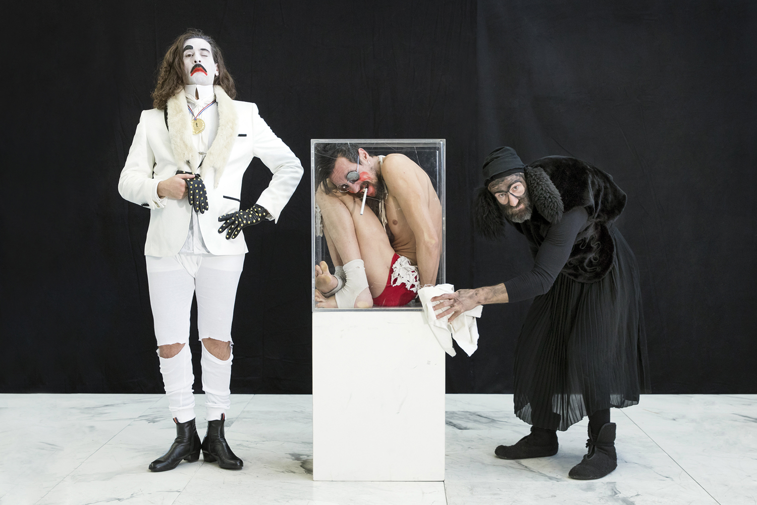 Μουσείο: ένας φαινομενικά ουδέτερος χώρος, με το δικό του σύστημα αξιών και τους δικούς του κανόνες. Τι γίνεται, όμως, όταν εμφανίζονται τρεις κλόουν και ανατρέπουν τα δεδομένα; Ο αεράτος και κομψός λευκός κλόουν, ο θερμόαιμος κοκκινομύτης και ο γκαφατζής σύντροφός του, που συμβολίζει την αναρχία και τη δημιουργικότητα, θέτουν το εξής ερώτημα: Πώς μπορεί να γίνει κατανοητός ένας κλόουν στο σύγχρονο θέατρο;
