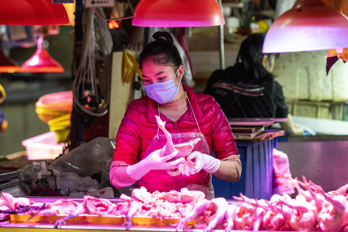 epaselect epa08189969 A woman sells chickens while wearing protection mask to protect themselves from coronavirus and H5N1 Bird Flu at the market in Guangzhou, Guangdong Province, China, 03 February 2020. Wearing masks in metro and all public places in Guangzhou is mandatory and offenders faces penalties if they don't obey this law. After the coronavirus outbreak in Wuhan, Hubei province at the beginning of this year, the Ministry of Agriculture and Rural Affairs of China said in statement that authorities had culled almost 18,000 chickens because of outbreak of H5N1 bird flu in Hunan province which is next to Hubei. EPA/ALEX PLAVEVSKI