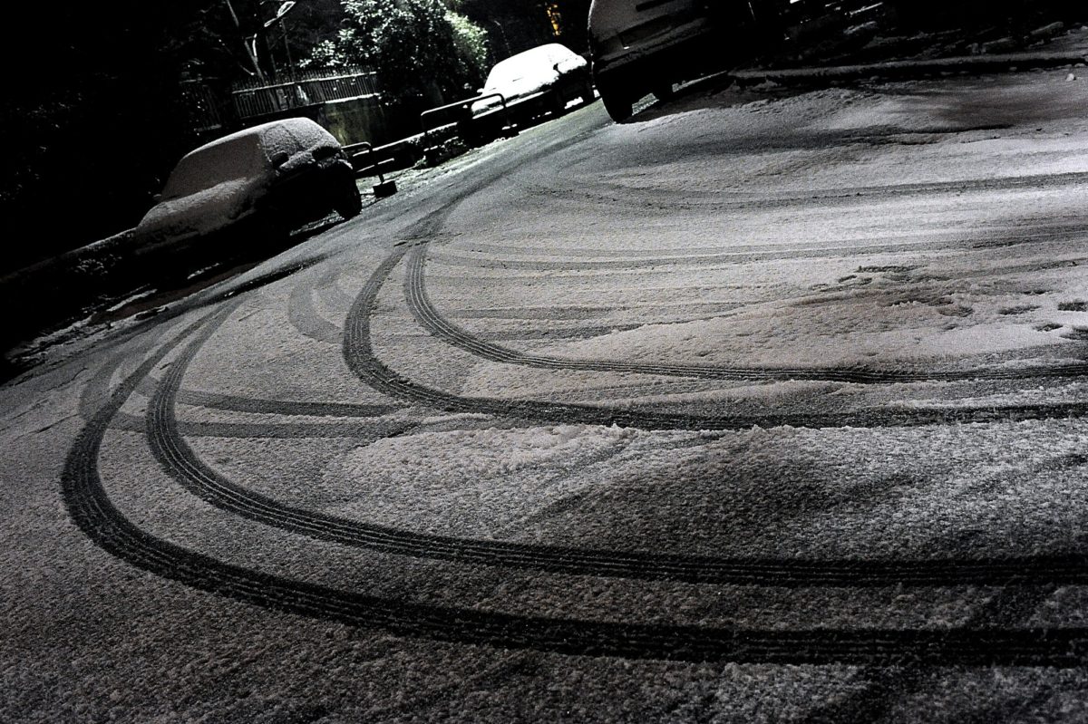 Μόνο με αντιολισθητικές αλυσίδες κινούνται τα οχήματα στην λεωφόρο Πάρνηθας από το τελεφερίκ προς το καζίνο.