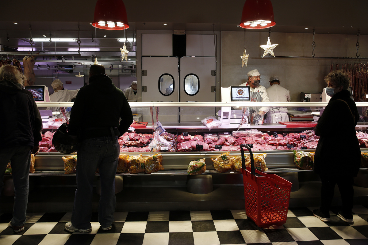 Πολίτες περιμένουν σε ουρά στο κρεωπολείο της Κεντρικής Λαχαναγοράς στο Ρέντη, προκειμένου να προμηθευτούν τα απαραίτητα τρόφιμα για το χριστουγεννιάτικό τραπέζι, Πέμπτη 24 Δεκεμβρίου 2020. ΑΠΕ-ΜΠΕ/ΑΠΕ-ΜΠΕ/ΑΛΕΞΑΝΔΡΟΣ ΒΛΑΧΟΣ