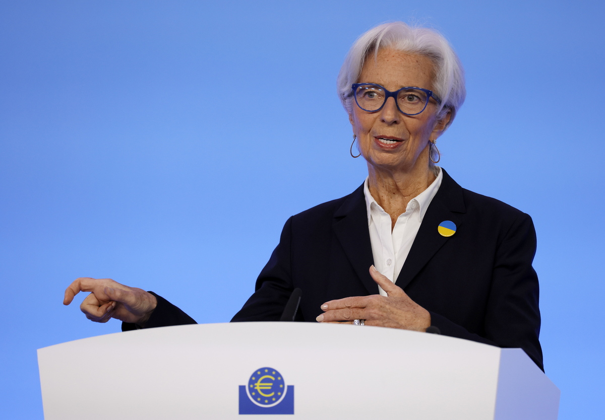epa09814663 European Central Bank (ECB) President Christine Lagarde speaks during a press conference following the meeting of the Governing Council of the European Central Bank in Frankfurt am Main, Germany, 10 March 2022. The ECB Governing Council is holding a monetary policy meeting on 10 March. EPA/RONALD WITTEK / POOL