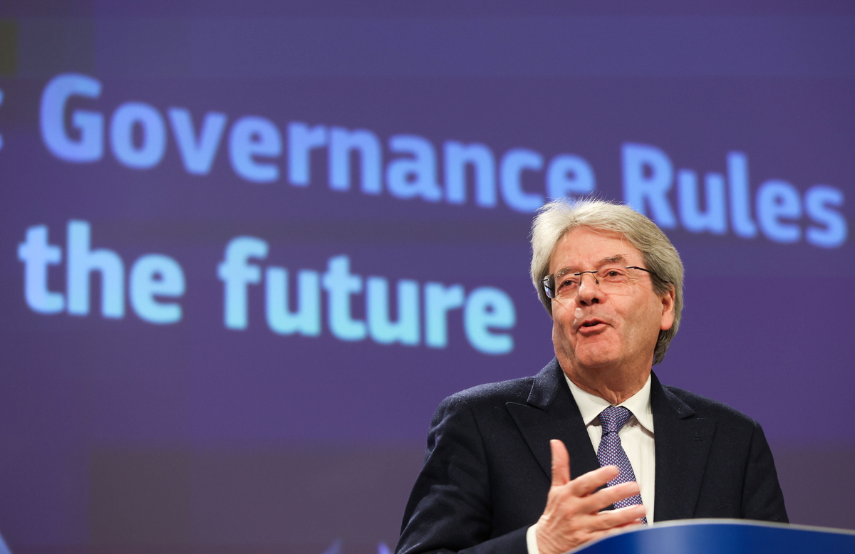 epa10592024 European Commissioner in charge of Economy, Paolo Gentiloni attends a press conference following European Commission weekly college meeting in Brussels, Belgium, 26 April 2023. The commission presents 26 April the review of the EU's economic governance framework. EPA/OLIVIER HOSLET